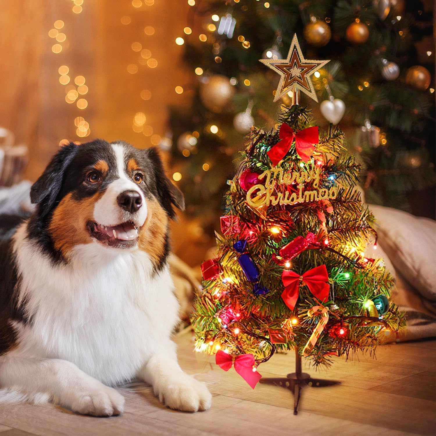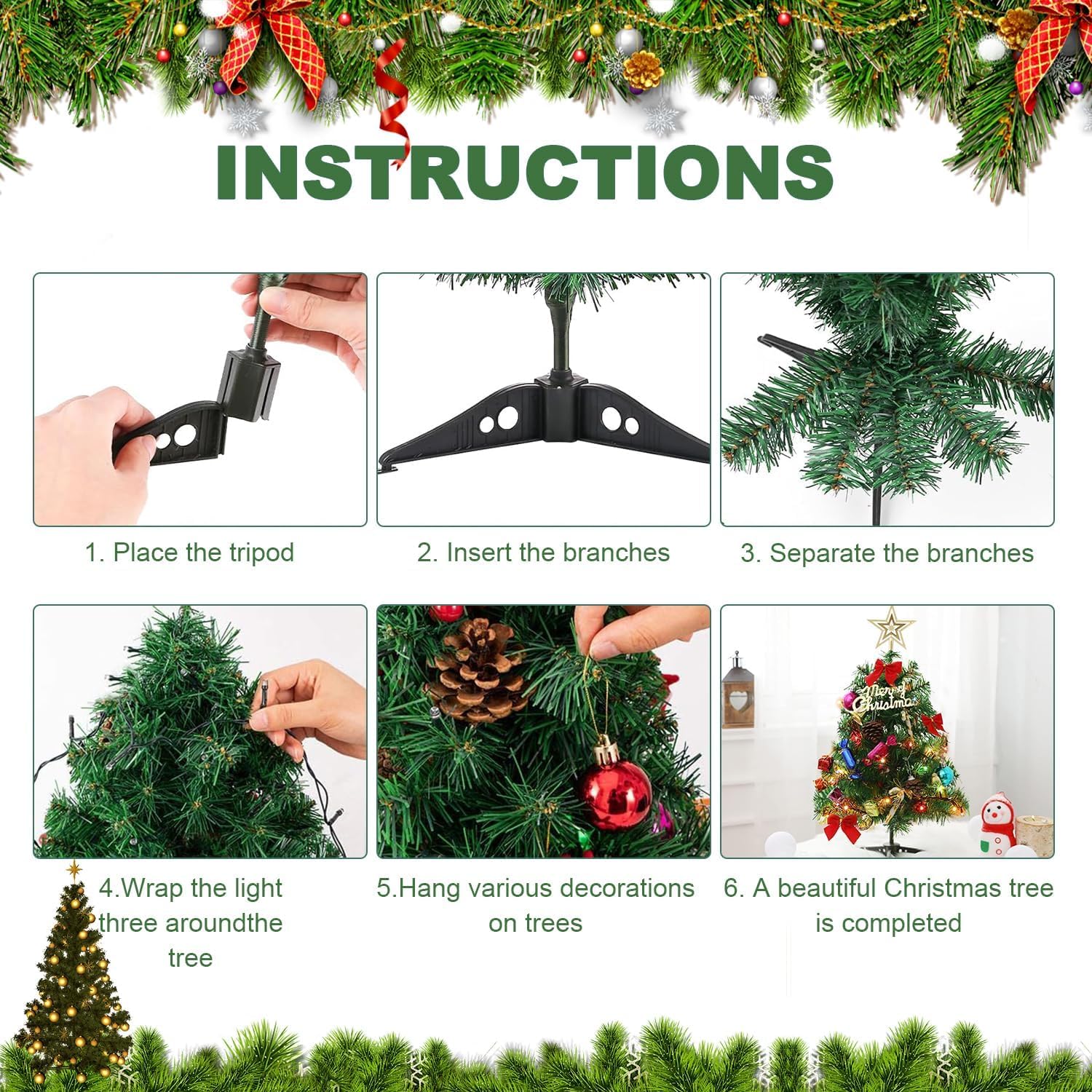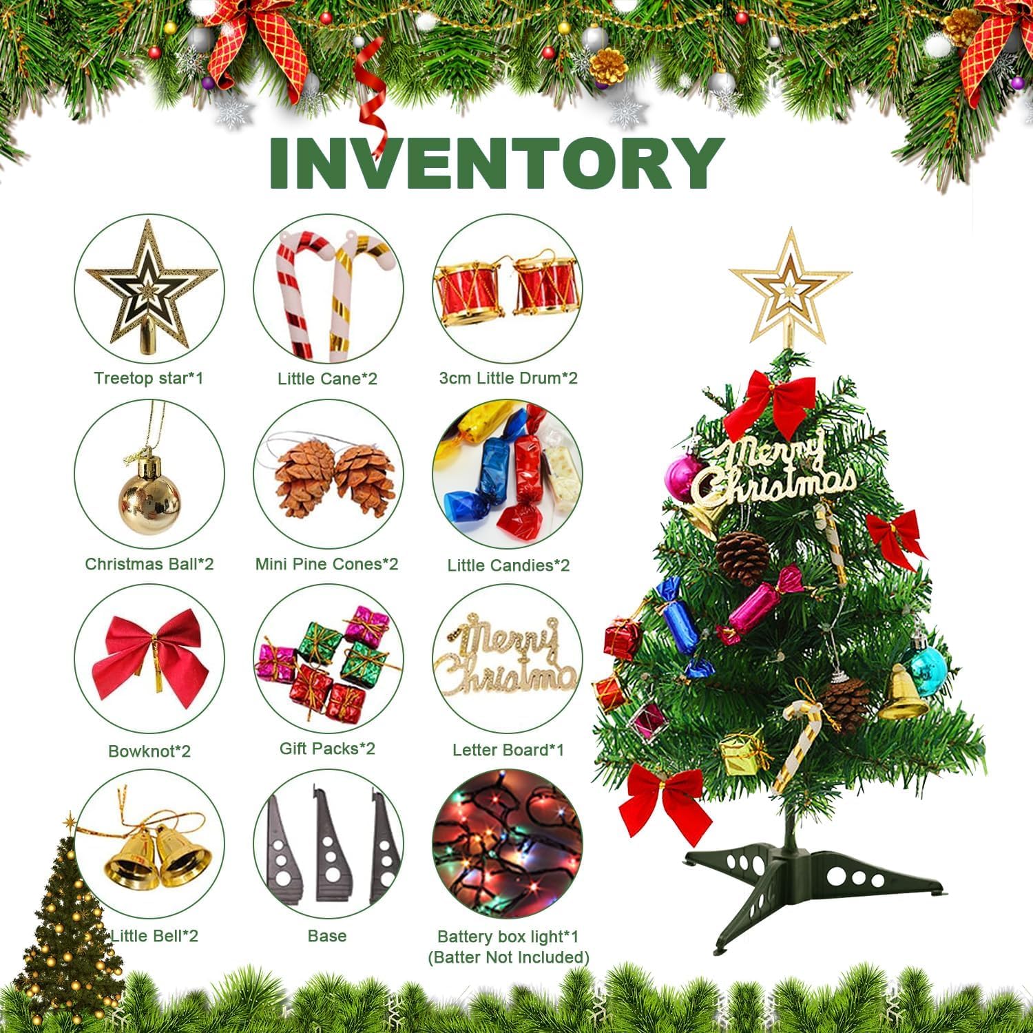 20 Inch Christmas Tree with Light Small Table Top Christmas Tree with LED String Lights, Star Treetop, Ornaments Balls Artificial DIY Christmas Table Decoration