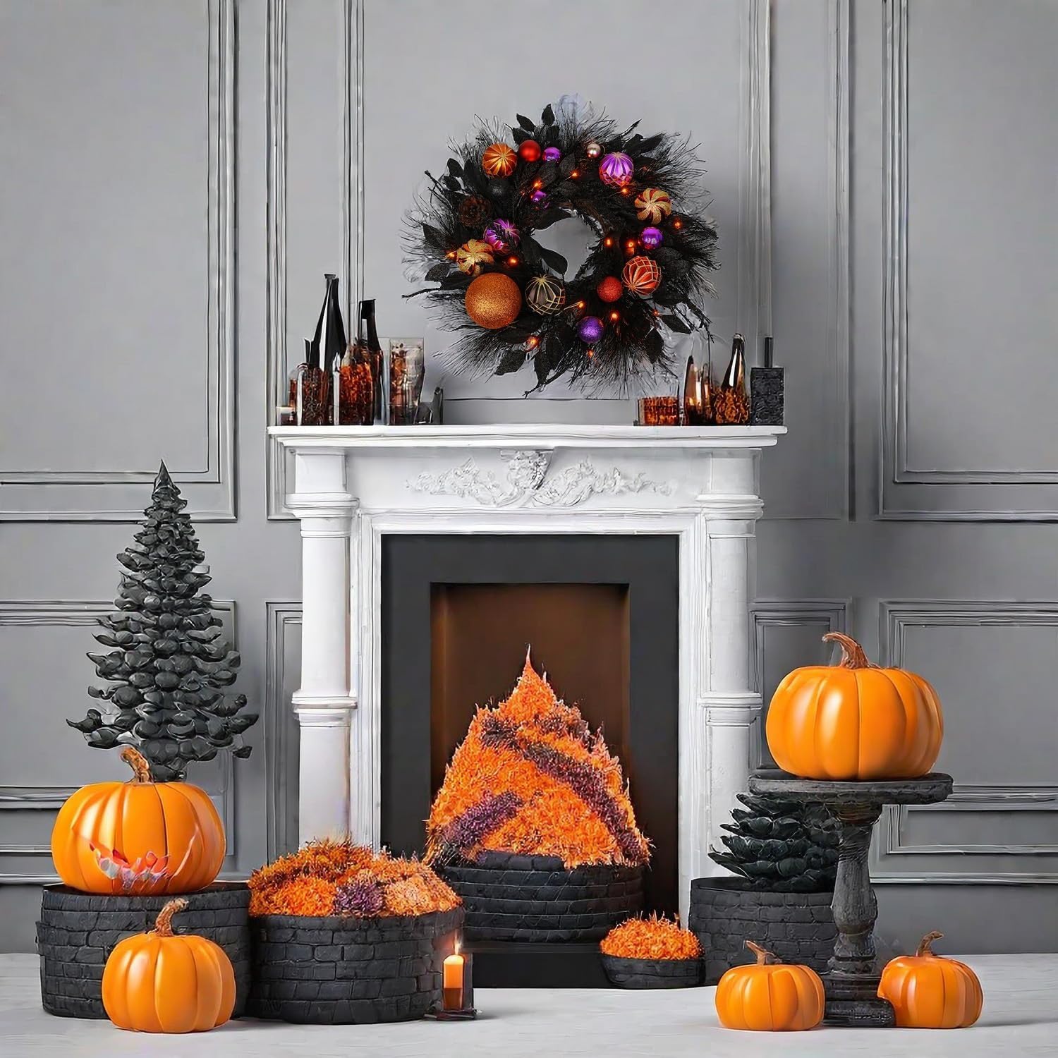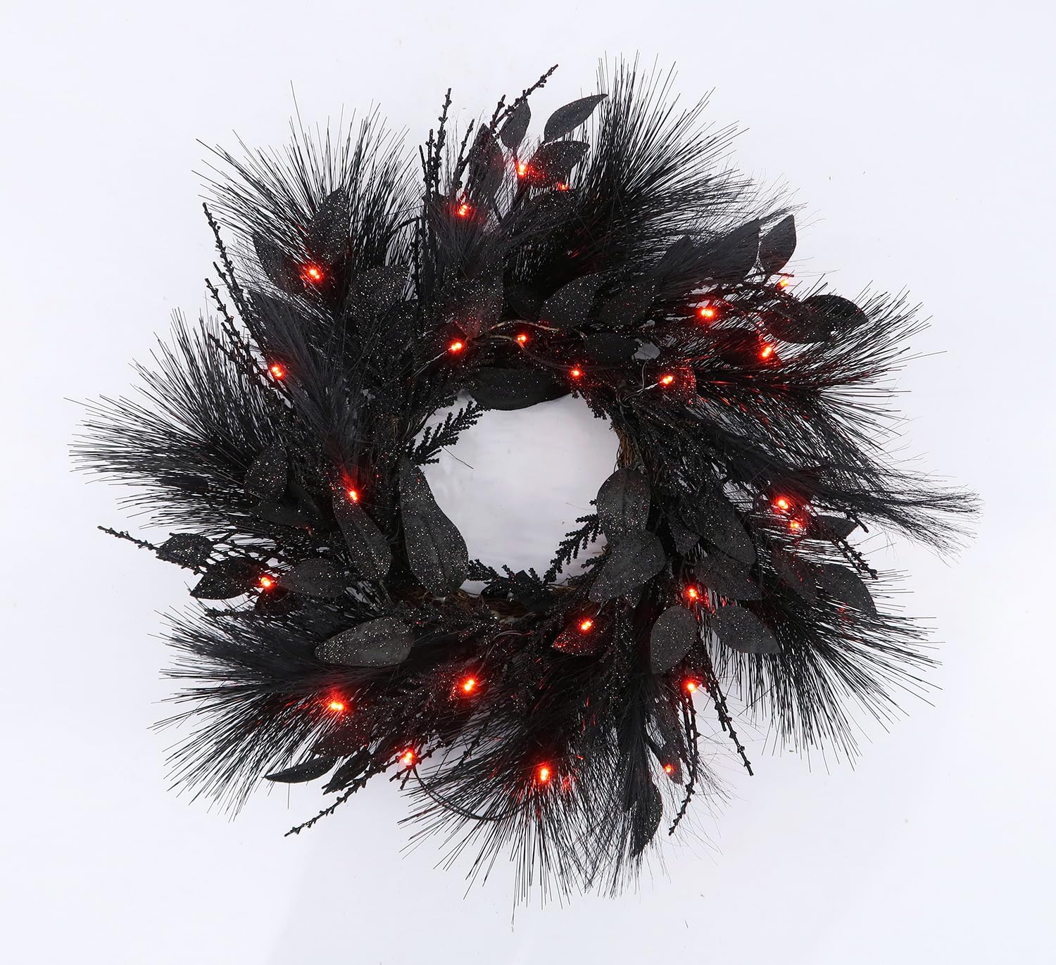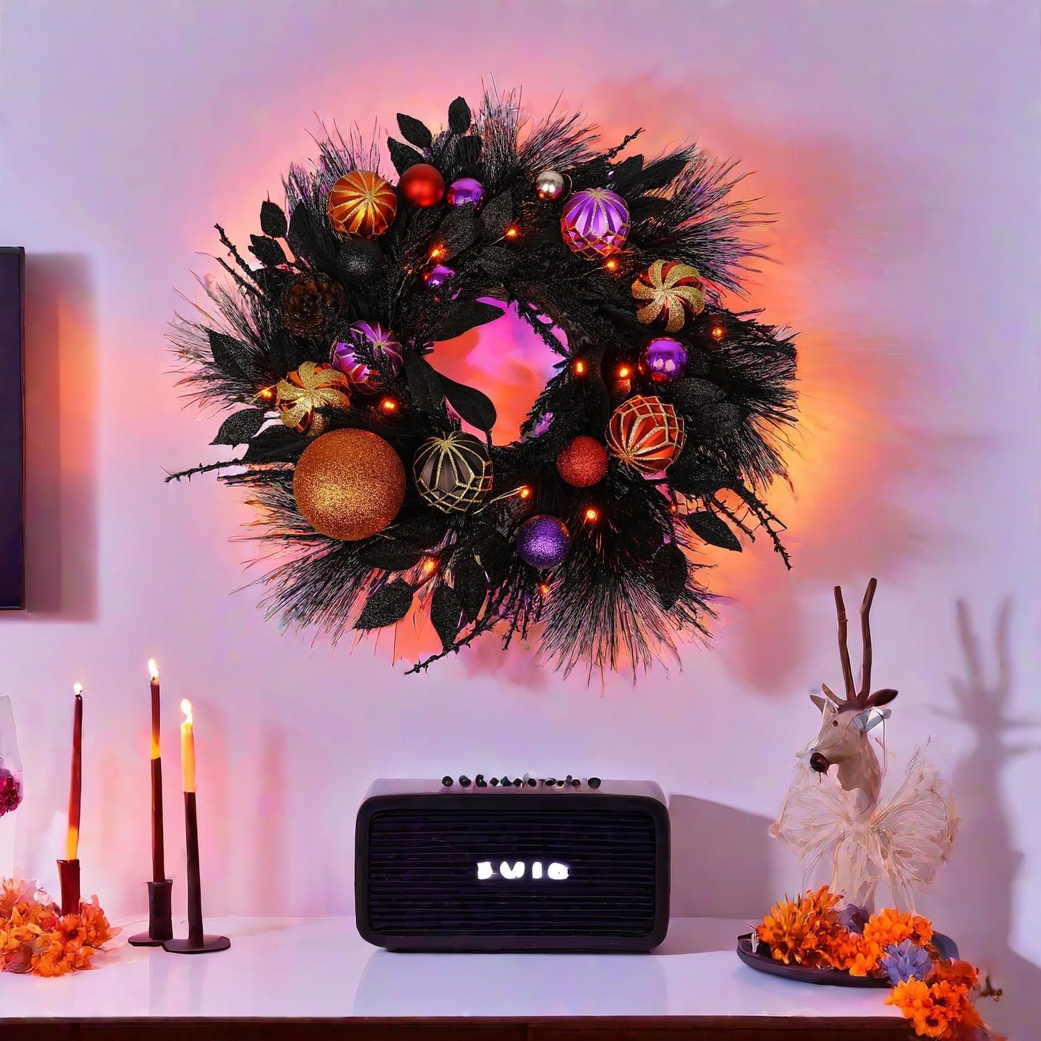 20 Inches Black Christmas Wreath Halloween Wreath Handmade Black Wreath for Front Door Porch Mantel Fireplace Window Wall Indoor Outdoor Halloween Christmas Winter Birthday Decor