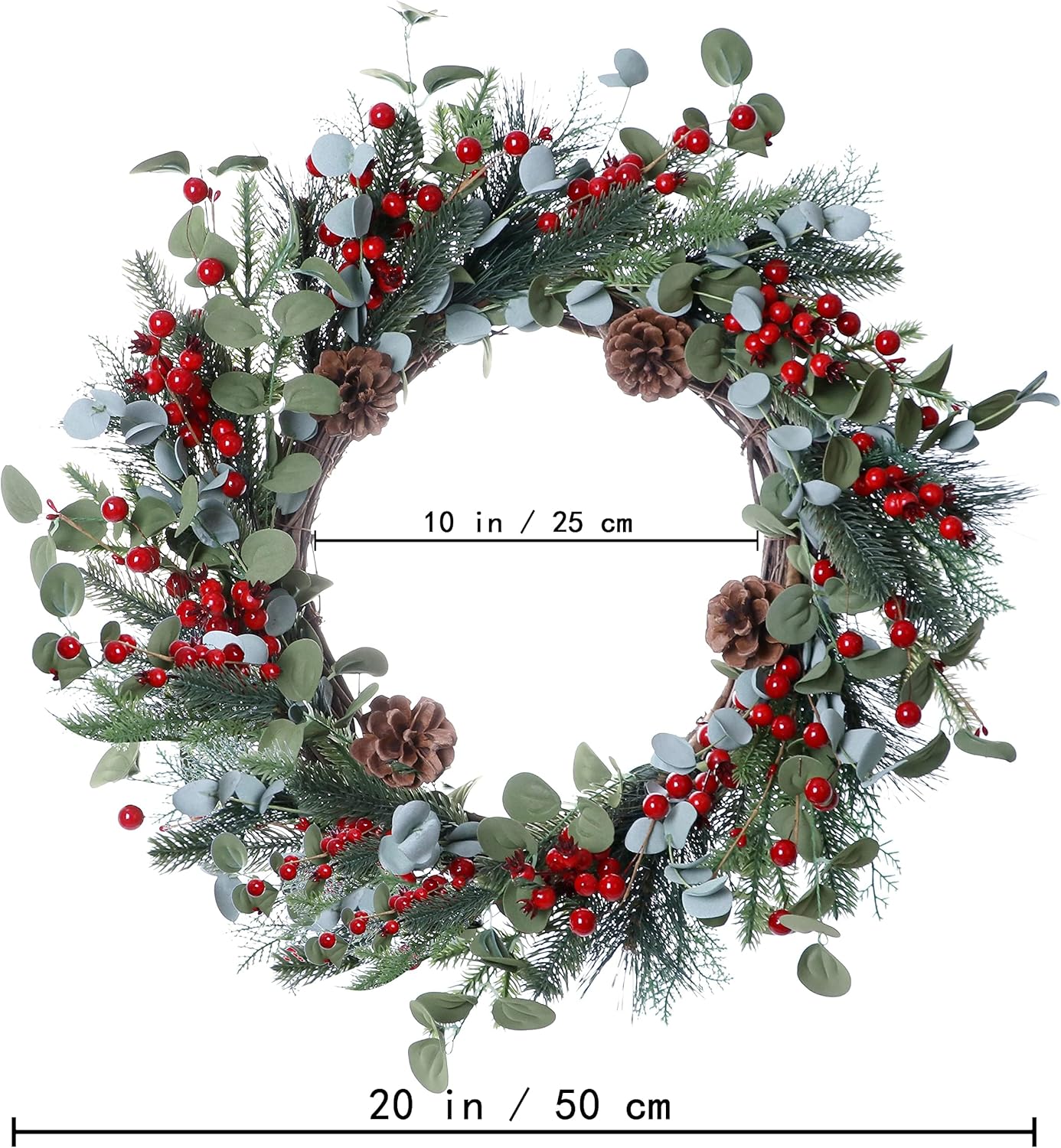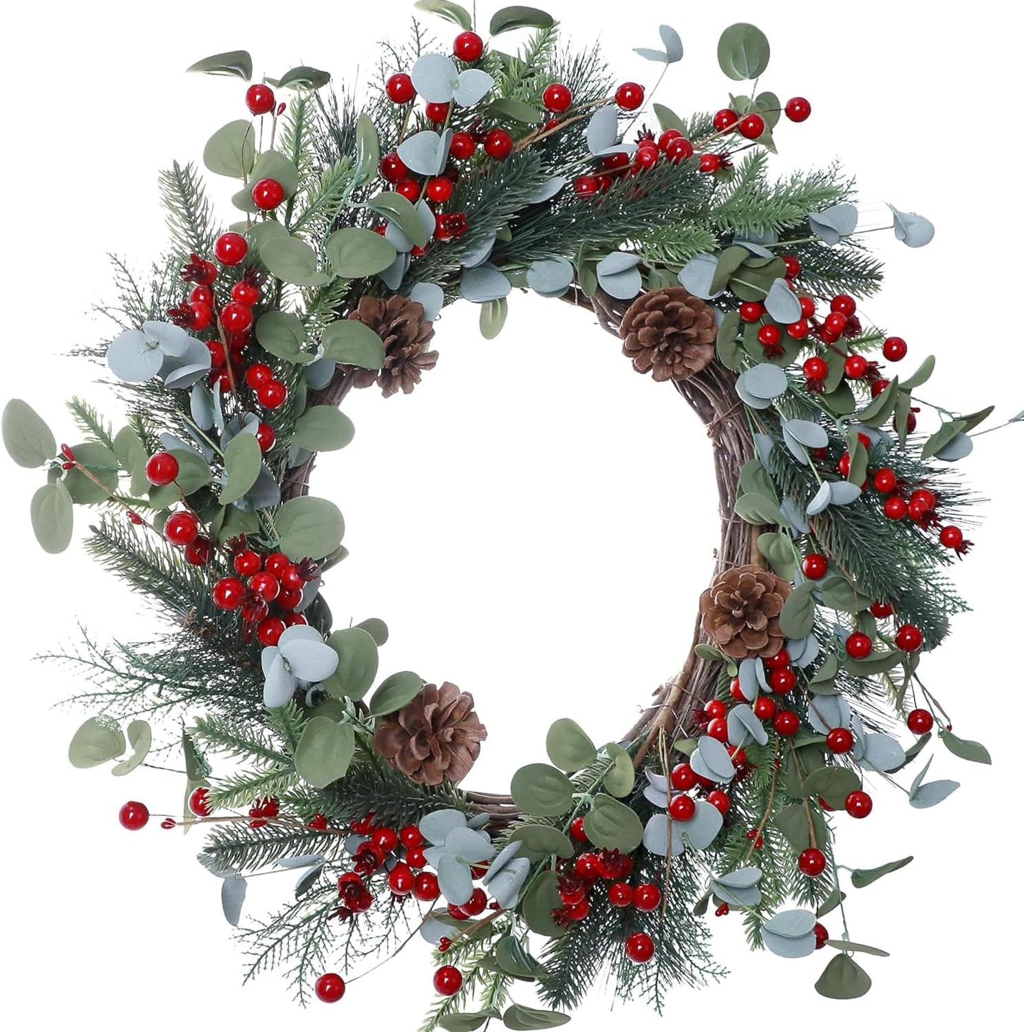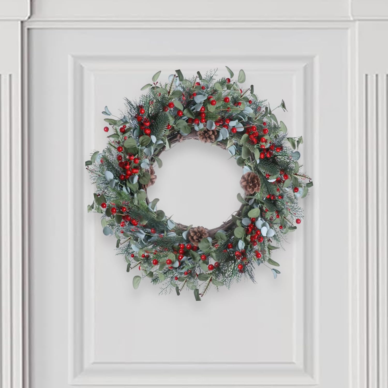 20 Inches Christmas Wreath Winter Wreaths Holiday Christmas Wreaths for Front Door Christmas Berry Wreath with Pine Needles Pine Cones Red Berries for Window Indoor Outdoor Winter Decorations
