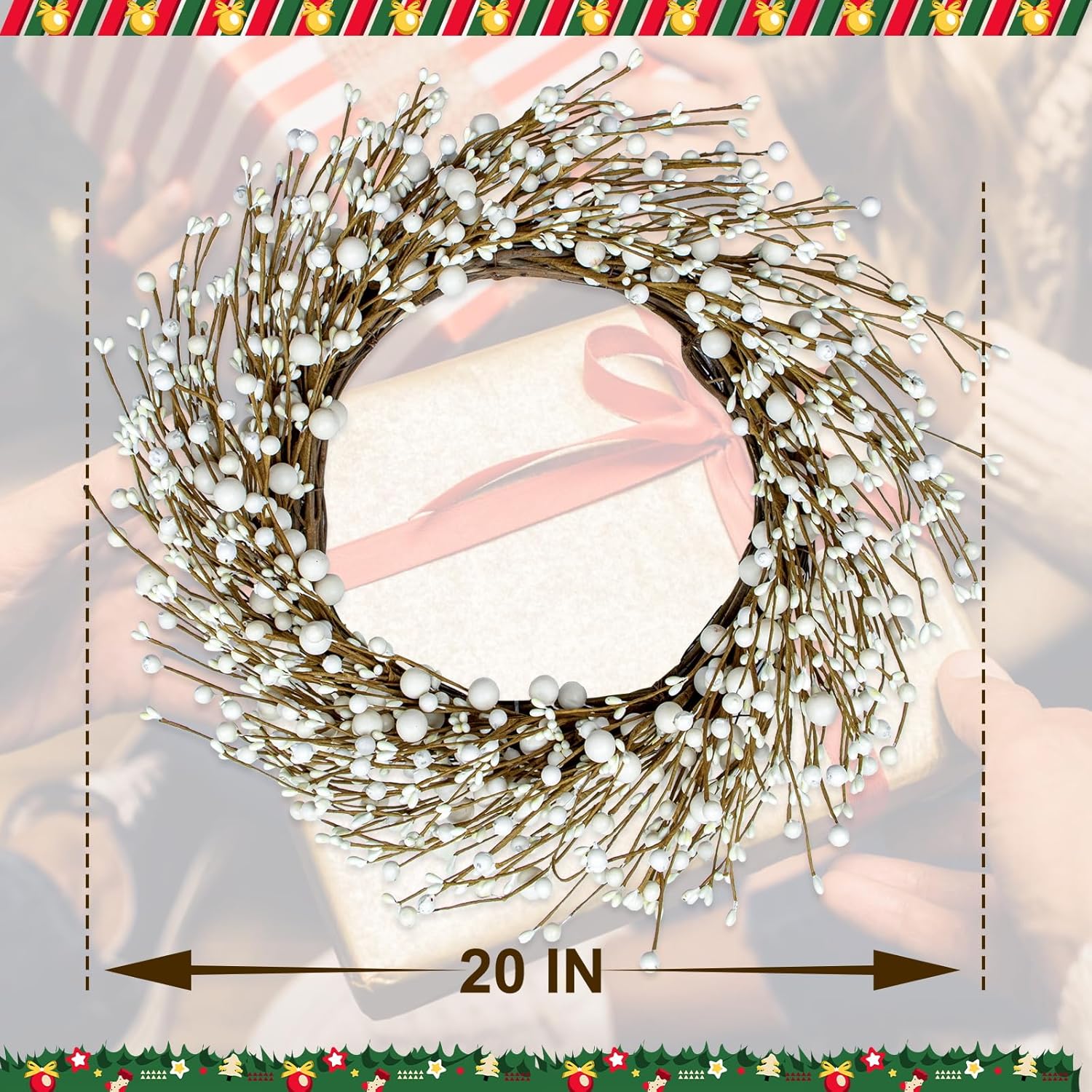 20 Inches White Door Wreath Winter Wreaths for Front Door White Berry Wreath for Farmhouse Indoors Outside Kitchen Wall Porch Christmas Winter