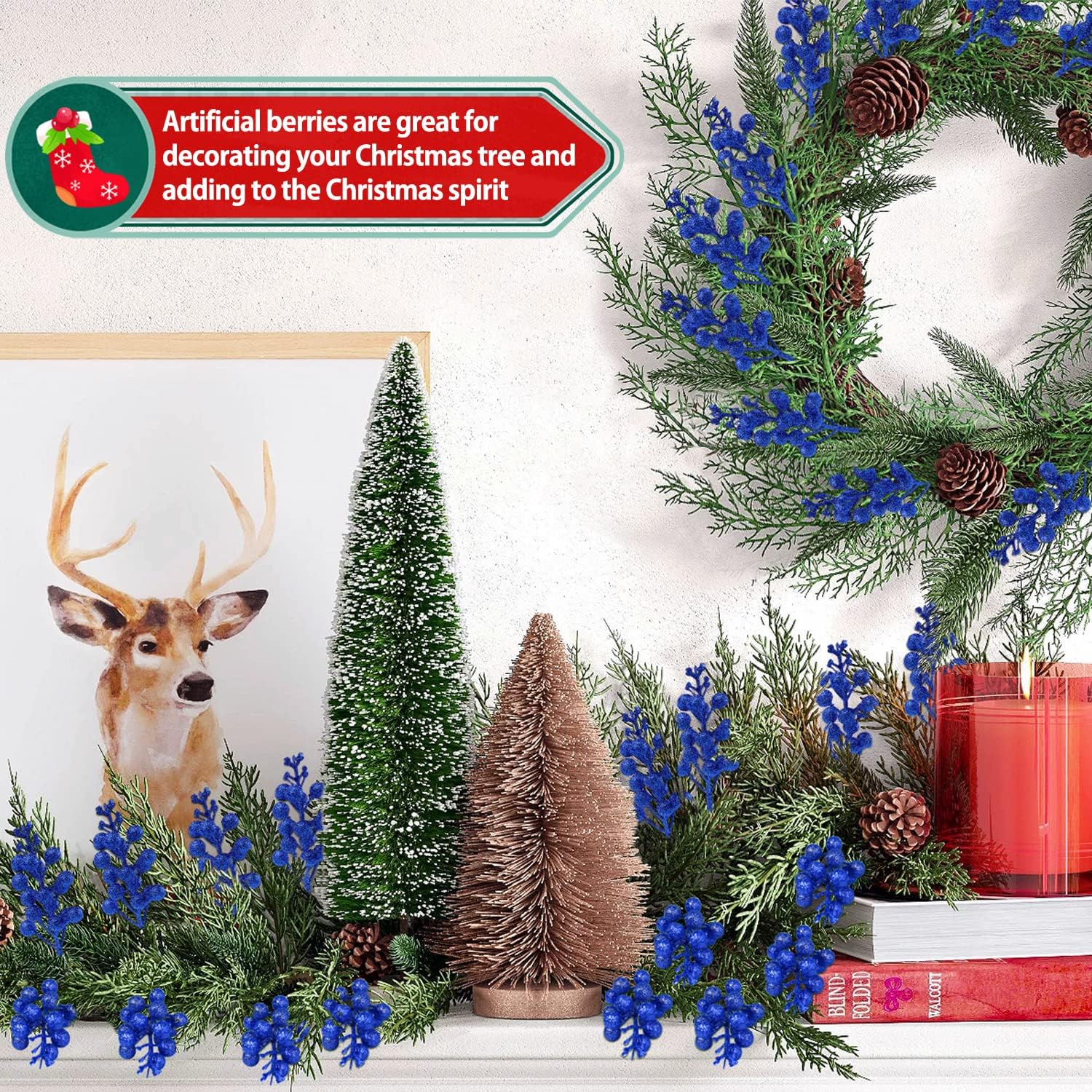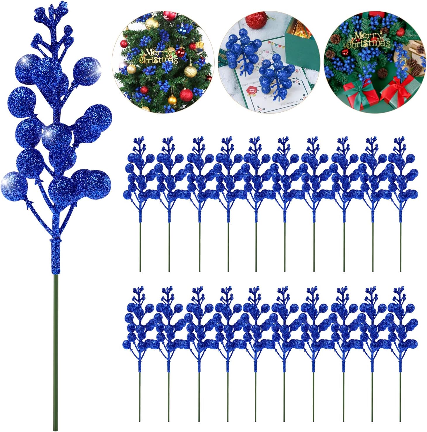 20 Pack 7.8 Inch Christmas Glitter Berries Stems for Christmas Tree Decorations, Artificial Christmas Picks for Christmas Tree Ornaments, DIY Xmas Wreath, Crafts, Holiday and Home Decor (Royal Blue)