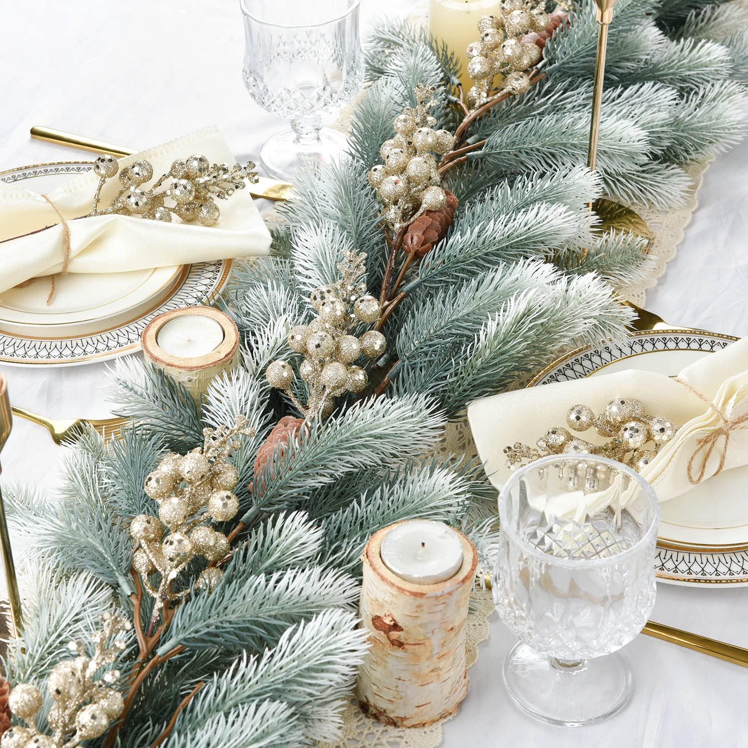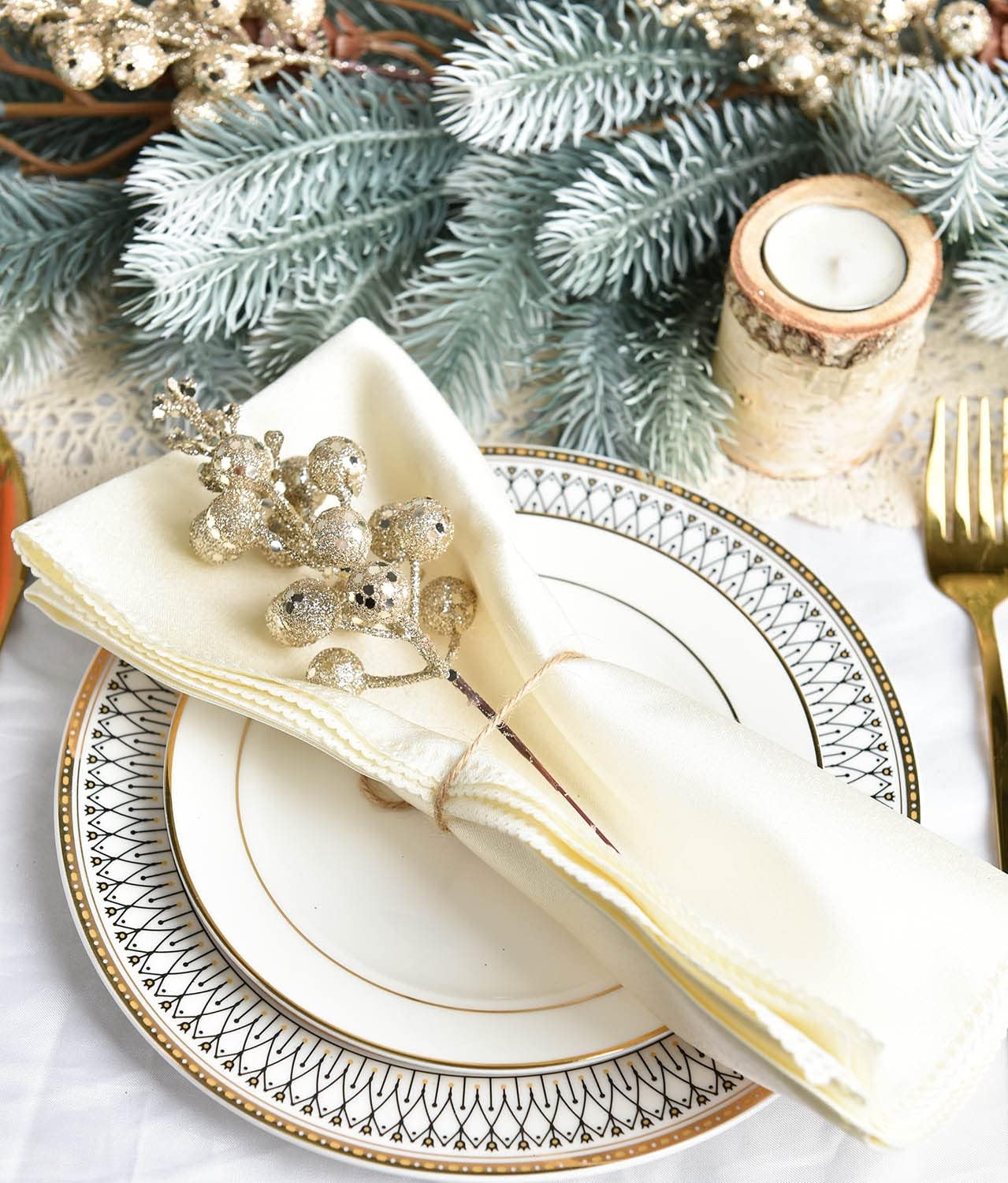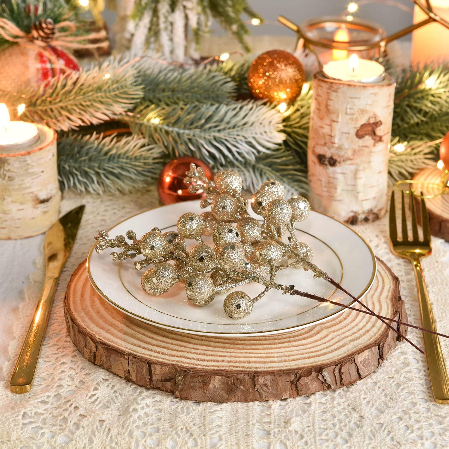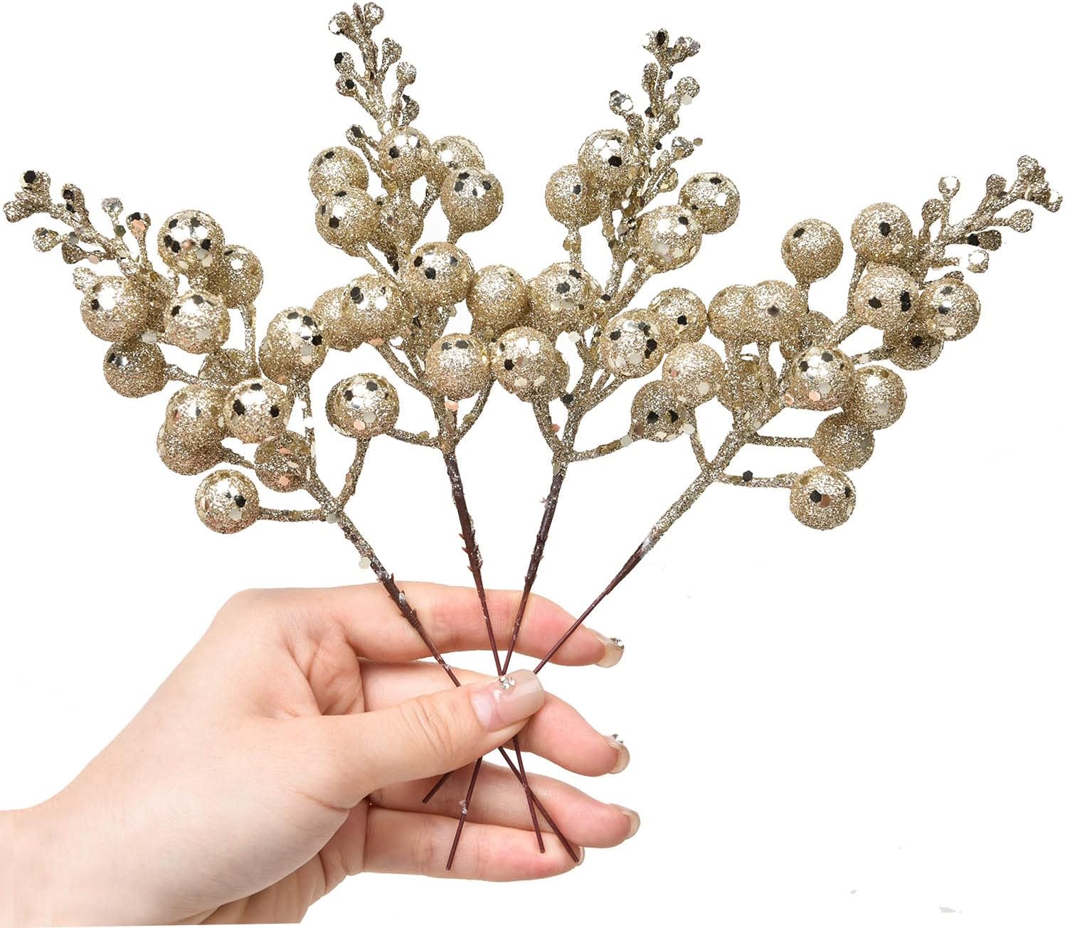 20 Pack Christmas Glitter Berries Stems, 8 Inch Champagne Artificial Christmas Picks for Christmas Tree Ornaments, DIY Xmas Wreath, Crafts, Holiday and Home Decor (Champagne)