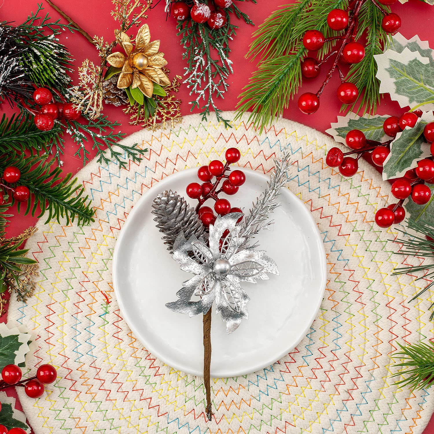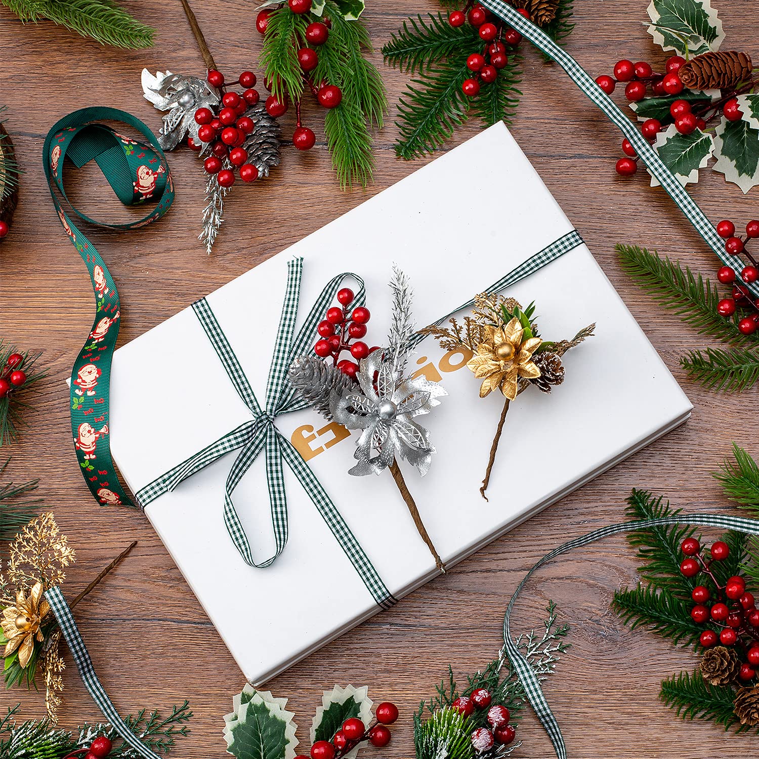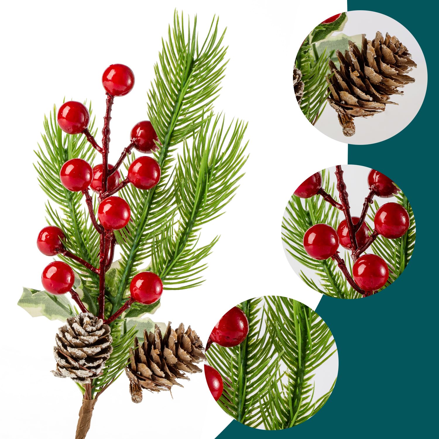 20 Pack Christmas Red Berry Picks Stems 10 Styles 5-11Inch Pine Picks and Sprayss for Christmas Tree Wreath ing Props Winter Holiday