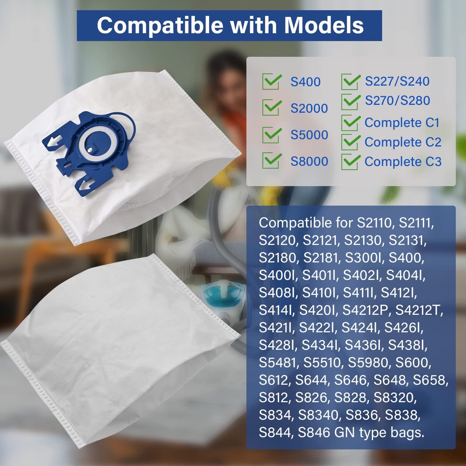 • 🎄【Perfect compatible】 This product is designed for Miele vacuum cleaner, which fit for Miele S400iS456i, S600S658, S800S858, S2000S2999, S5000S5999, S8000S8999, Miele Classic C1, Miele Complete C1, Complete C2, Complete C3, Miele S227S240, S270S280 S400, S2000, S8000 and S5000 series canister miele gn vacuum cleaner bags. Compares to Miele part 10123210. Please confirm the model before purchg, for anything you can consult us.