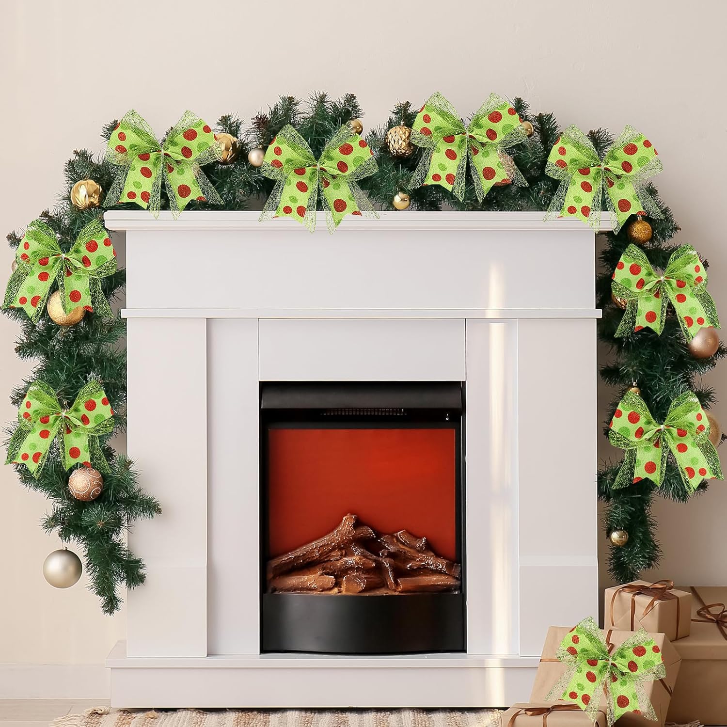20 Pcs Christmas Elf Bows Decoration Christmas Wreath Bows Red and Green Christmas Bows Glitter Dot Bows Ribbons Decoration for Xmas Tree Ornaments Holiday Party Wedding Home Farmhouse Decor