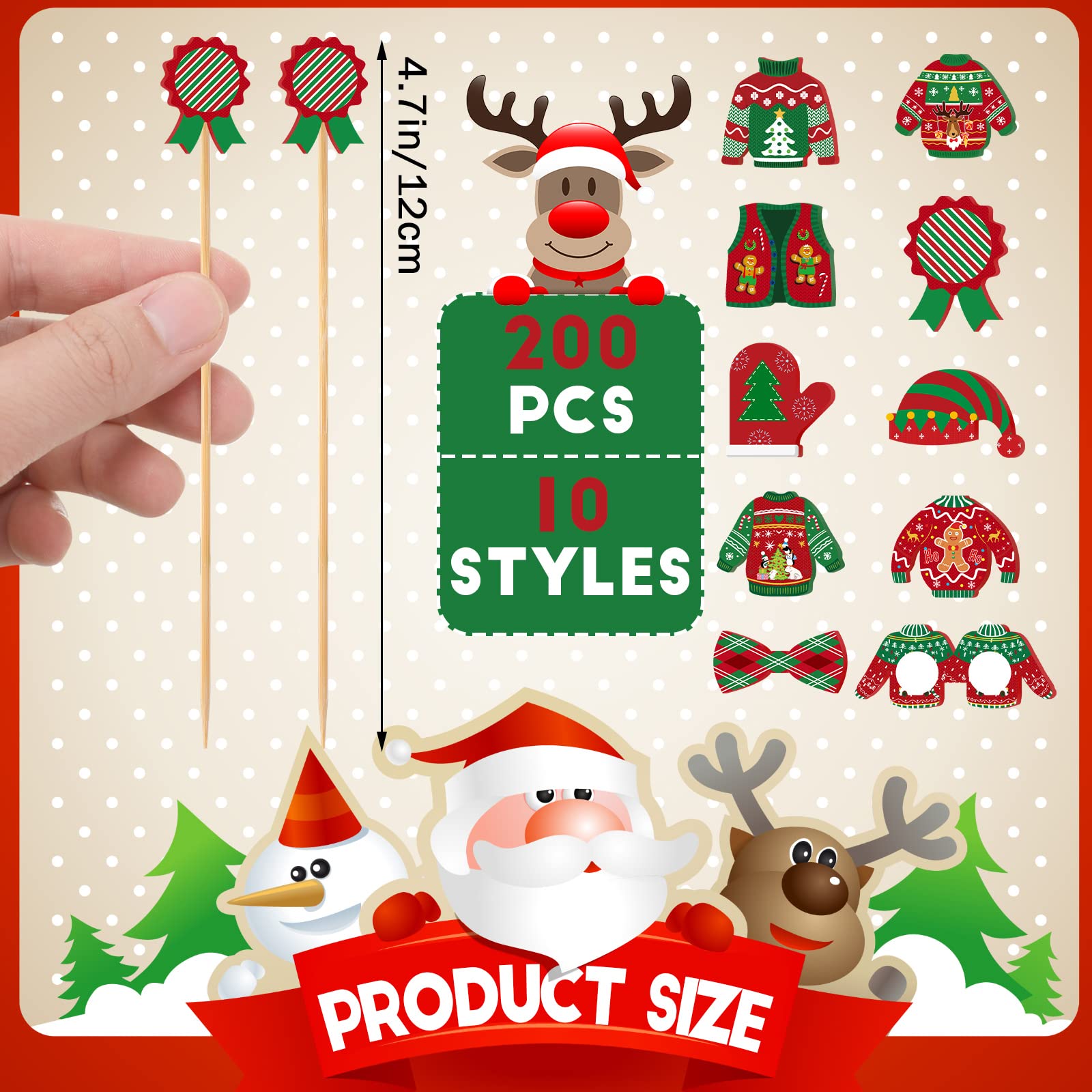 β’ Adorable Toothpicks Sets: you will receive 200 pieces of ugly sweater cocktail picks, they are designed with 10 styles, 20 pieces for each style, stylish and adorable, the rich quantity can satisfy your different daily needs and replacement
