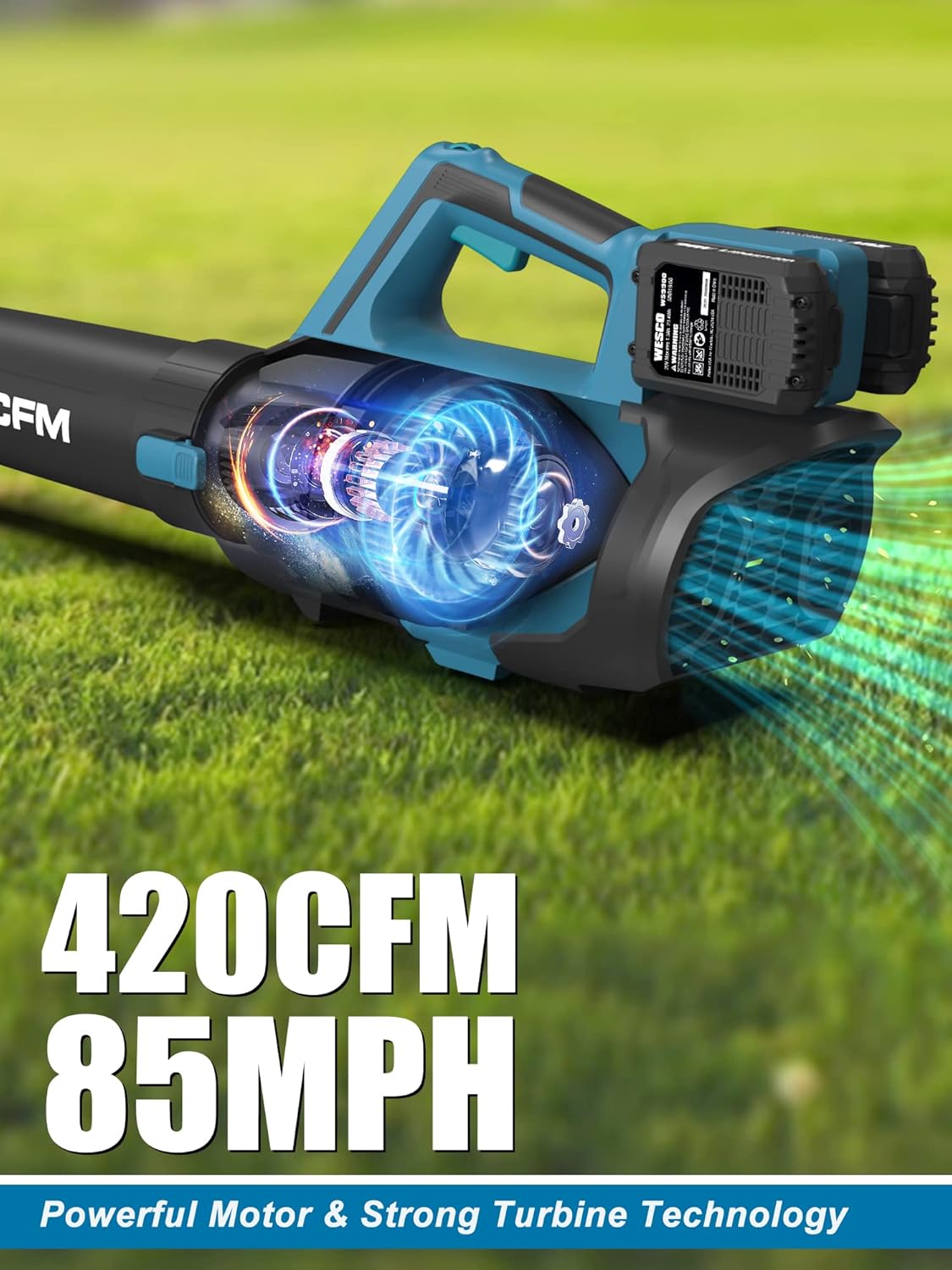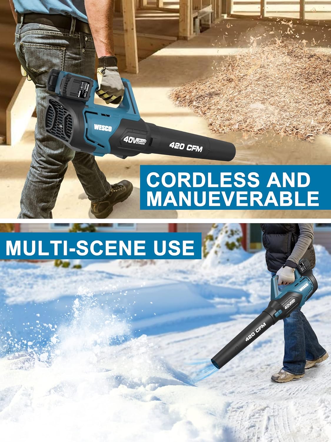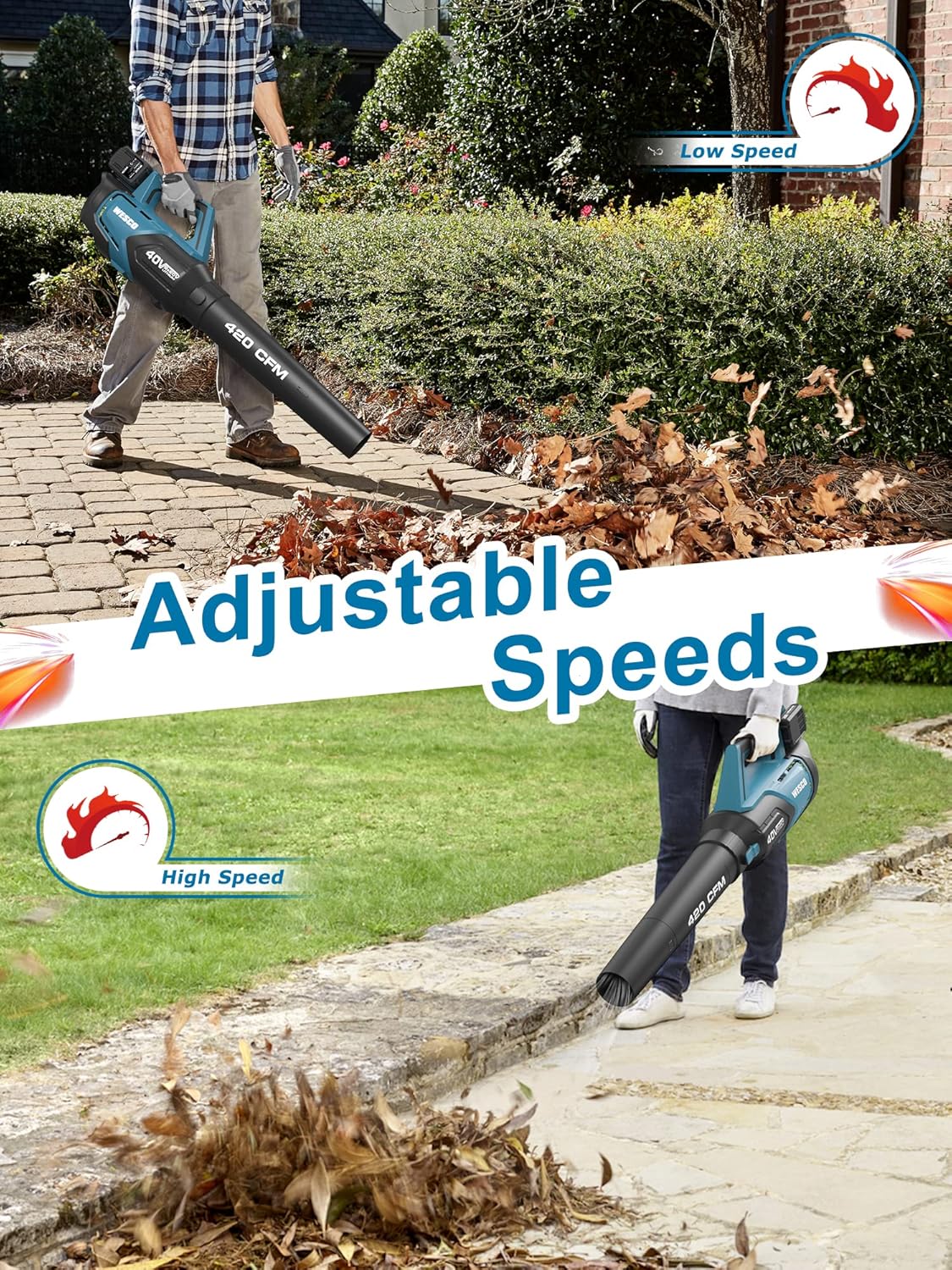 20V Blower Cordless Leaf Blower, 420 CFM 2Pcs 2.0Ah Battery Lightweight Leaf Blower Brushless Snow Blower Handheld Sweeper for Blowing Leaves, Dust, Snow Debris, Yard, Hard to Clean Corner