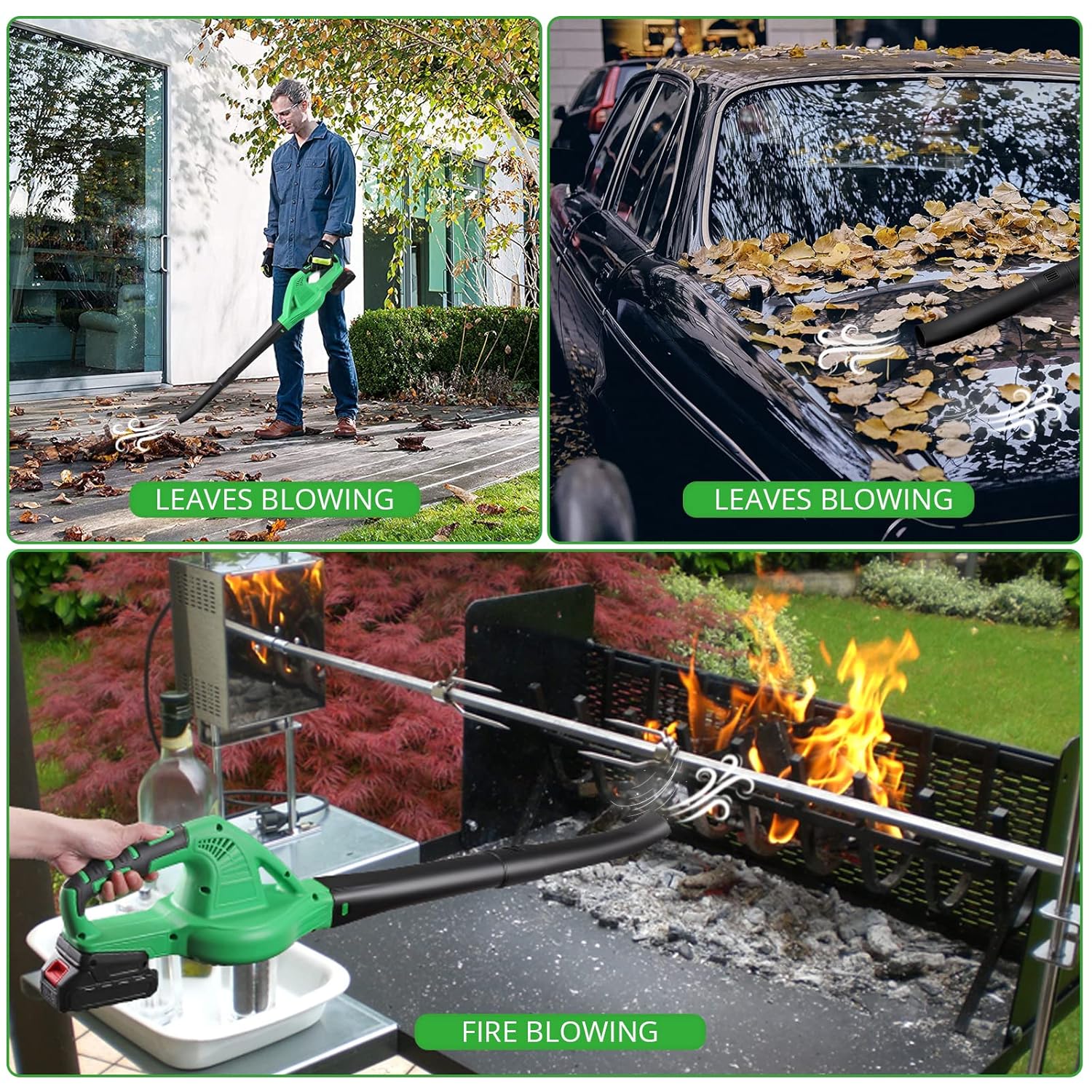 21V Cordless Leaf Blower, GARLLEN Electric Leaf Blower, Variable-Speed Lightweight Leaf Blower with 2.0Ah Battery, Fast Charger and 2 Section Tubes, for Patio, Yard, Leaf/Dust Blowing