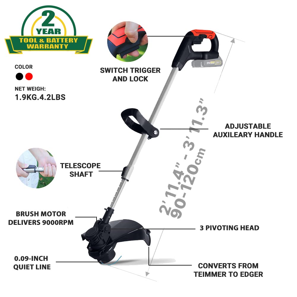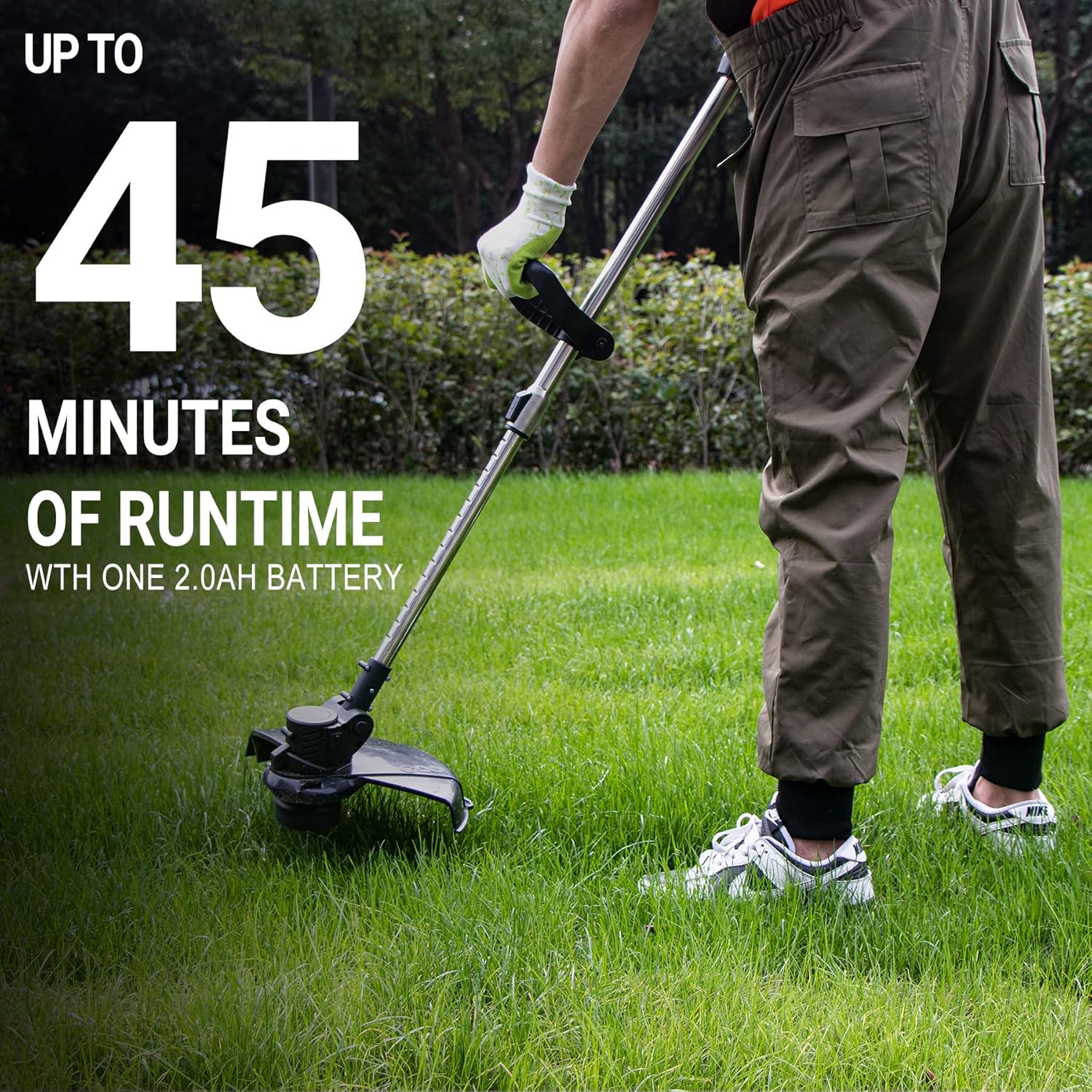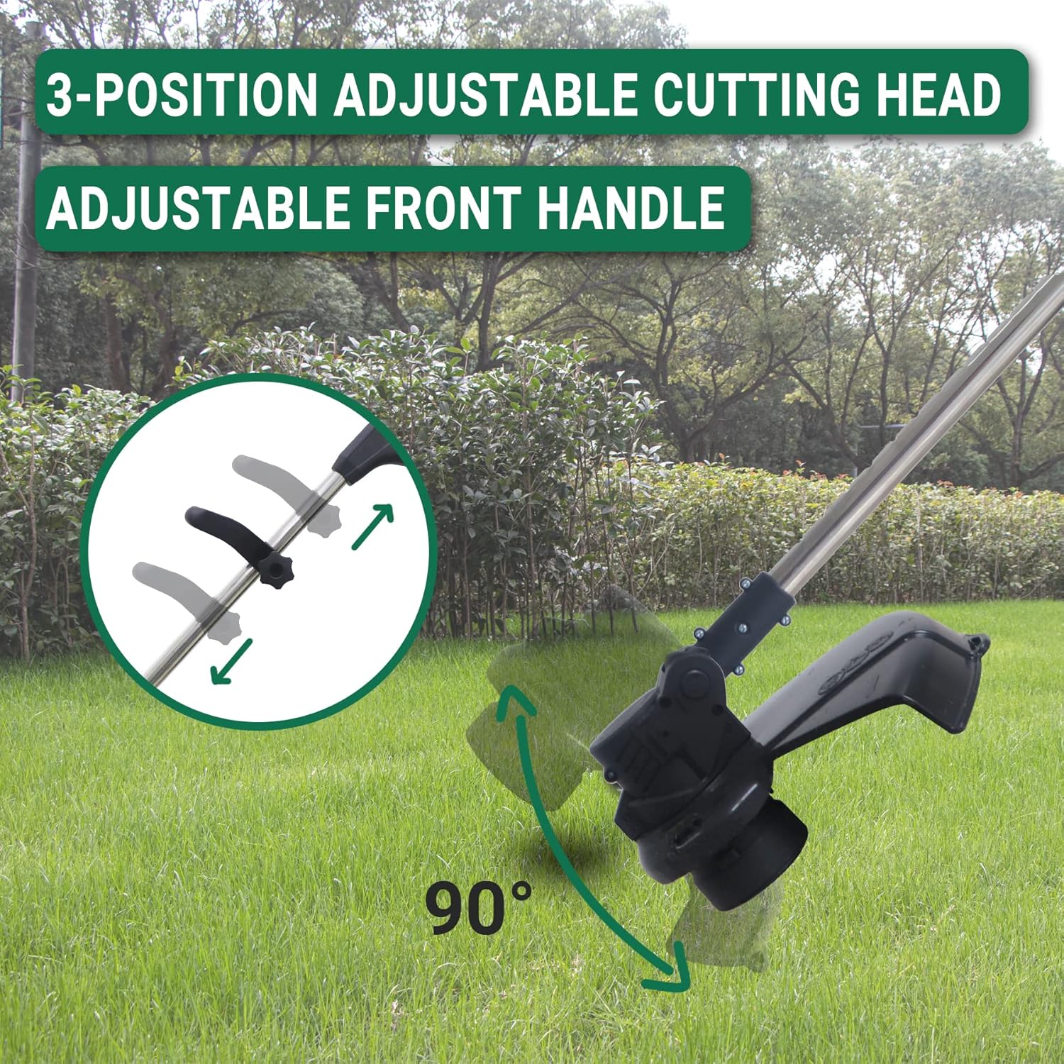 21V Weed Wacker Battery Powered, T TOVIA Cordless String Trimmer & Edger, 10 Inch Electric Weed Eater with 90 Degree Adjustable Head and Loop Handle, Telescoping Shaft, 2.0Ah Battery and Charger
