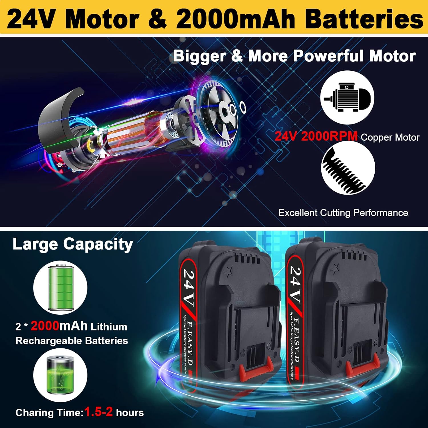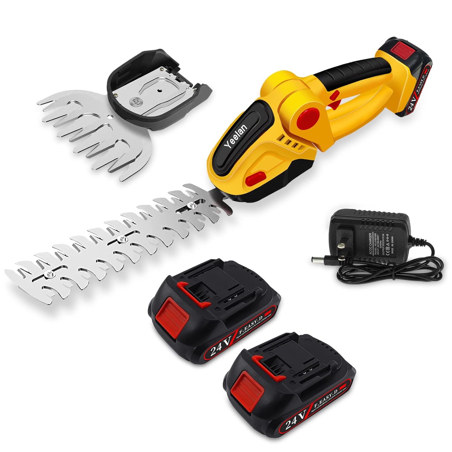 24V Hedge Trimmer Cordless & Grass Shear, Yeelan 2 in 1 Handheld Shrub Trimmer Electric Bush Trimmer, Portable Power Hedge Shears & Grass Cutter with 2 Pcs Rechargeable Batterys for Garden & Lawn