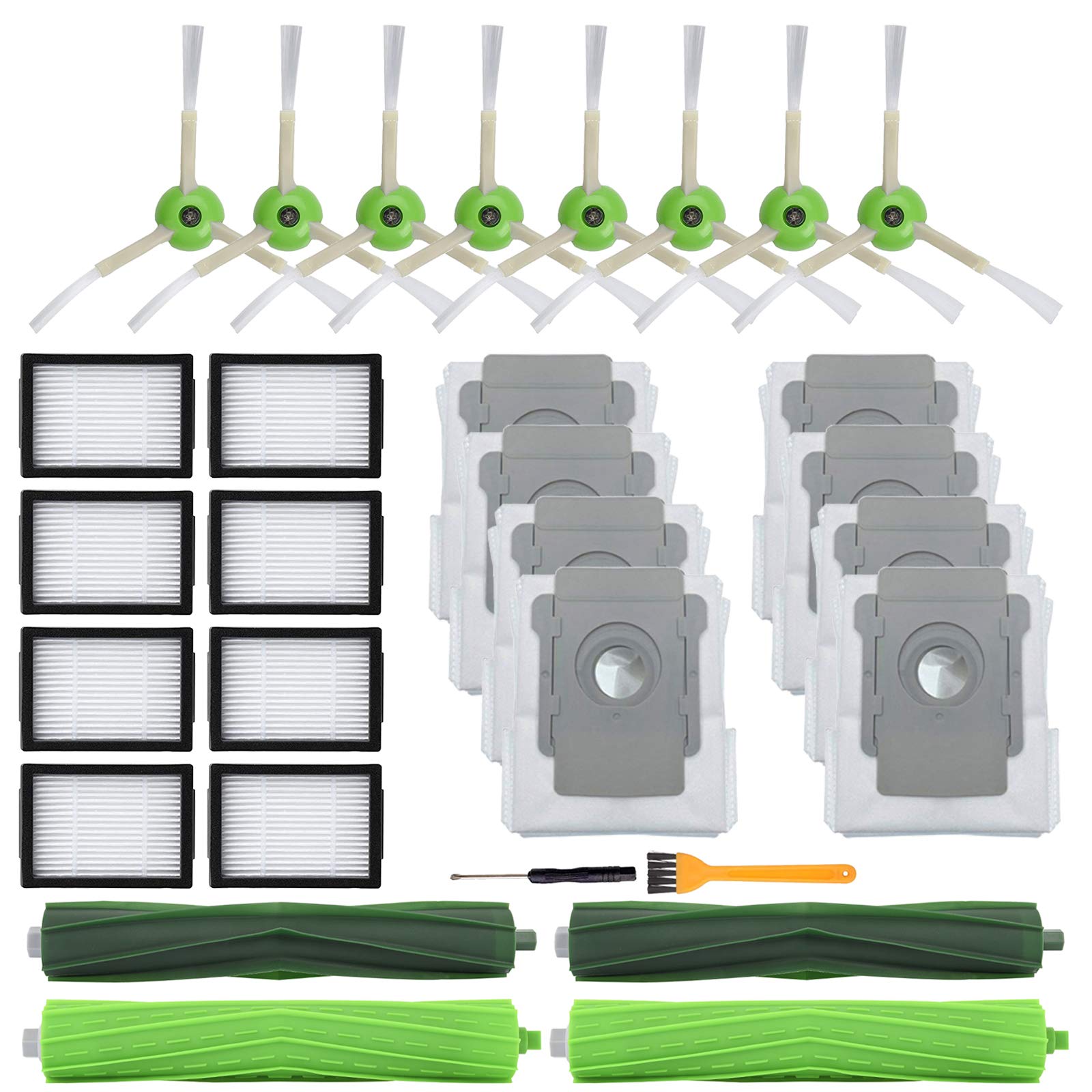 26 Pack Parts For Irobot Roomba J77150 I33150 I3+3550 I4 I6 I6+6550 I77150 I7+7550 I8 I8+ Robot Vacuum Accessories,2 Sets Roller Brushes,8 Filters,8 Side Brushes,8 Dust Bags