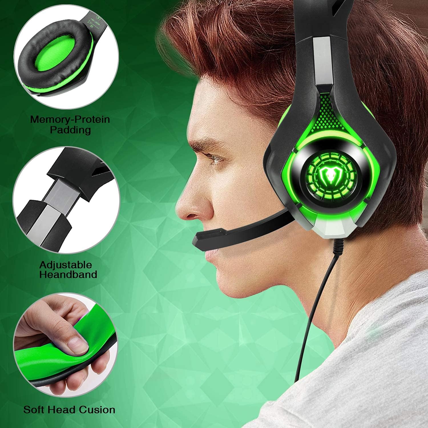 3.5mm PS4 Gaming Headset Headphone with Microphone and LED Light Compatible with Playstation 4, PS5, Xbox one, PC (Green)