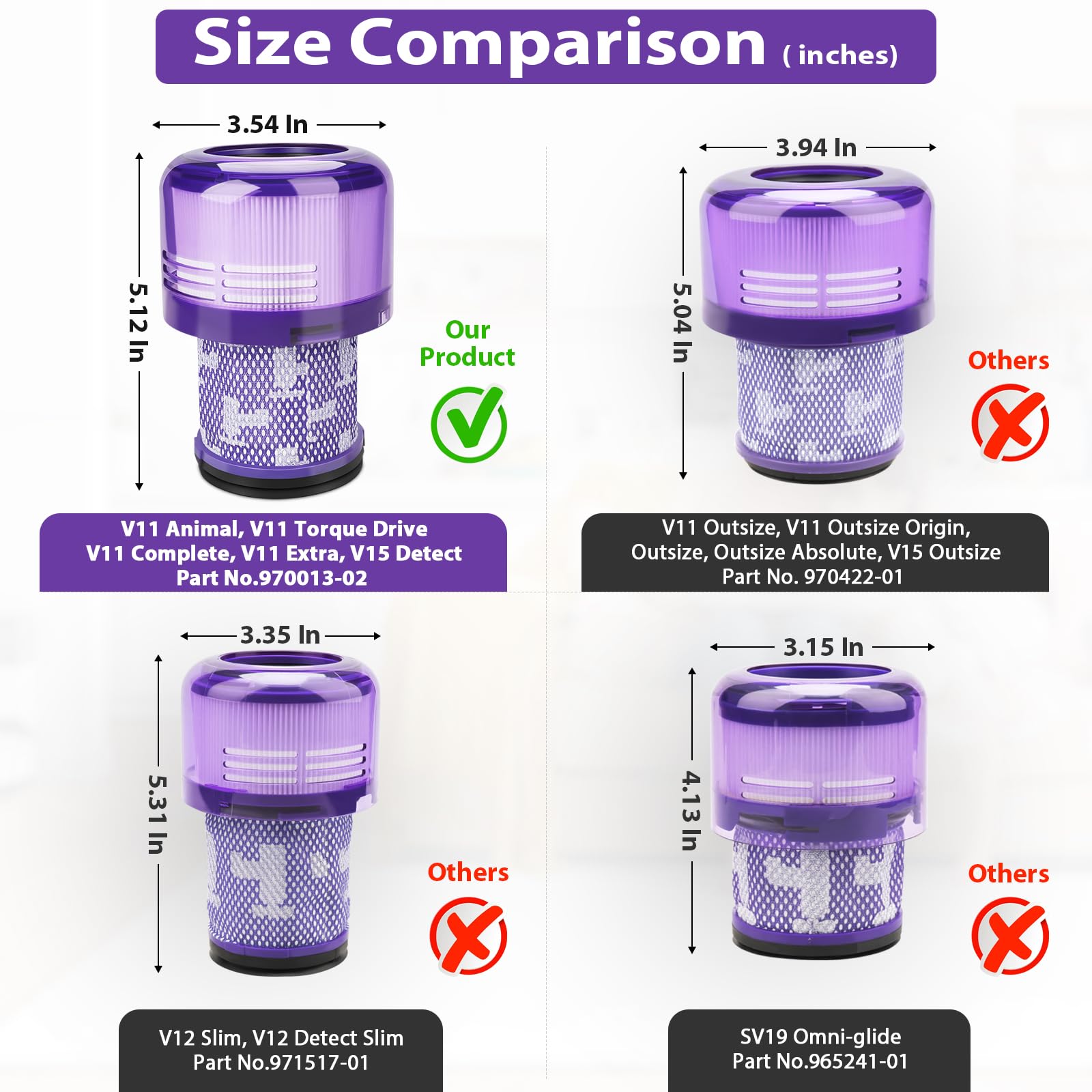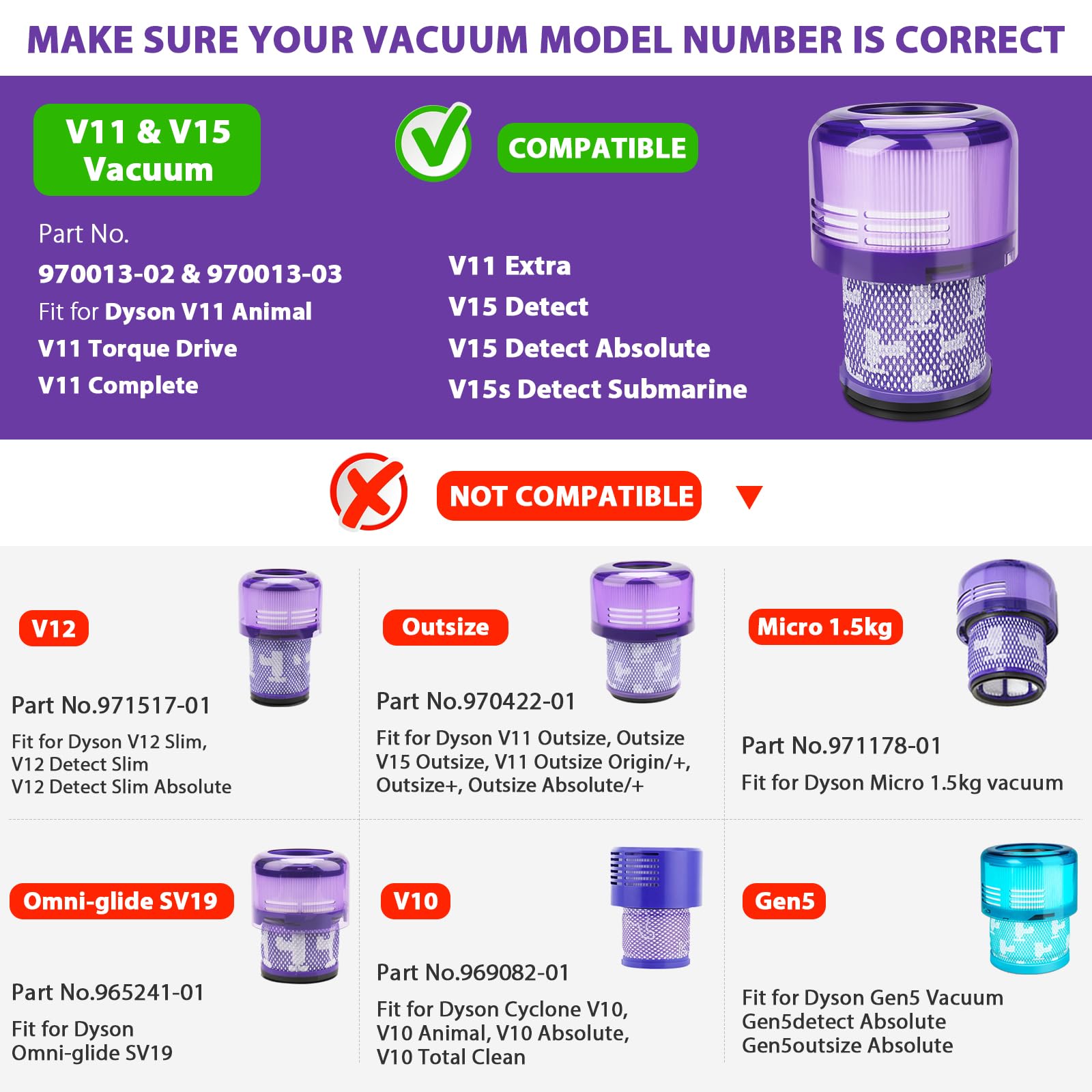 3 Pack Vacuum Filters For Dyson V11 Torque Drive V11 Animal V11 Complete V11 Extra V15 Detect V15S Detect Submarine Vacuums, Compare To Part 97001302