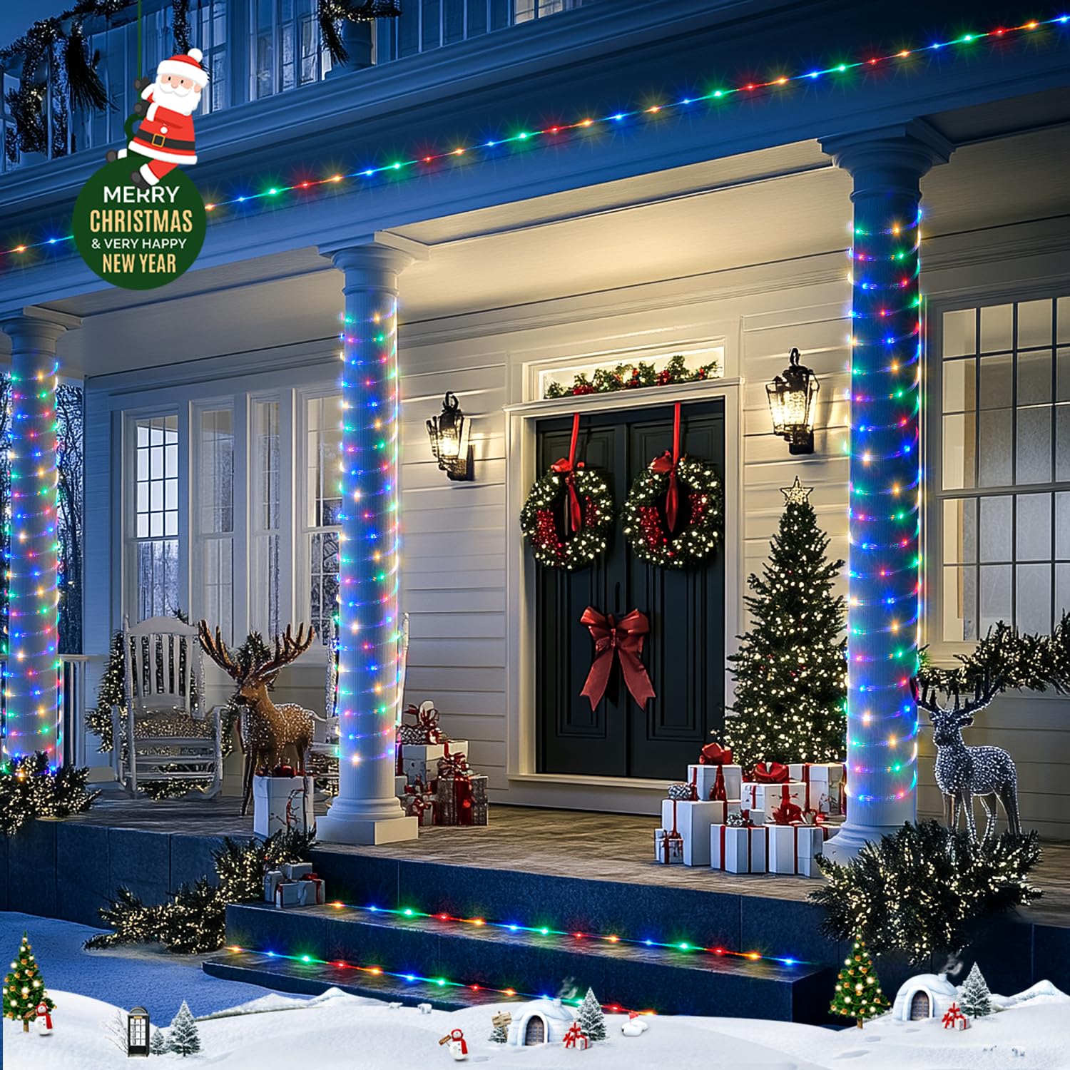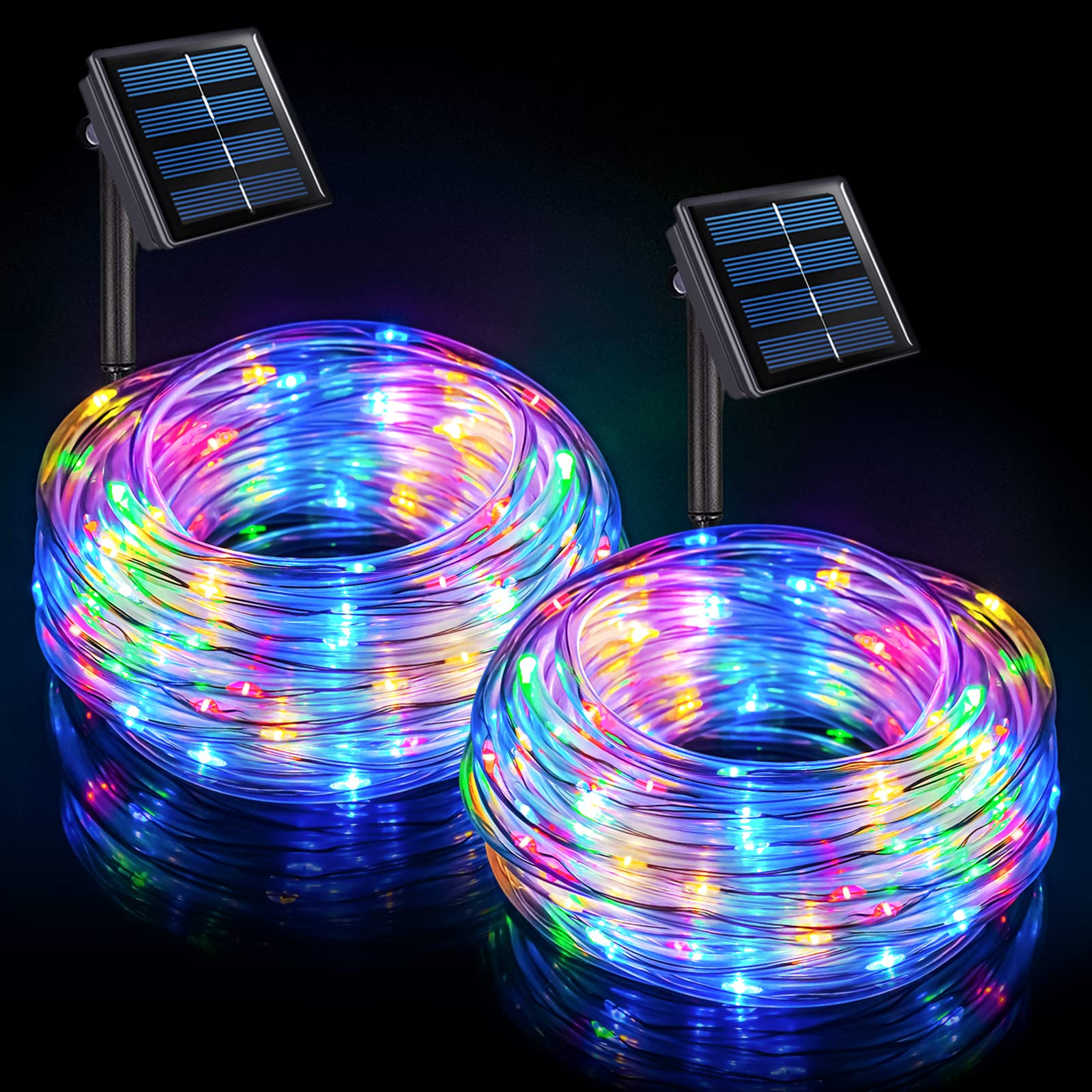 33 Ft 100 LED Solar Camping Lights, 2 Pack Trampoline Lights Solar Powered, 8 Modes Solar Lights for Camping Tent Slid Ladder Trampoline Accessories (Multicolor)