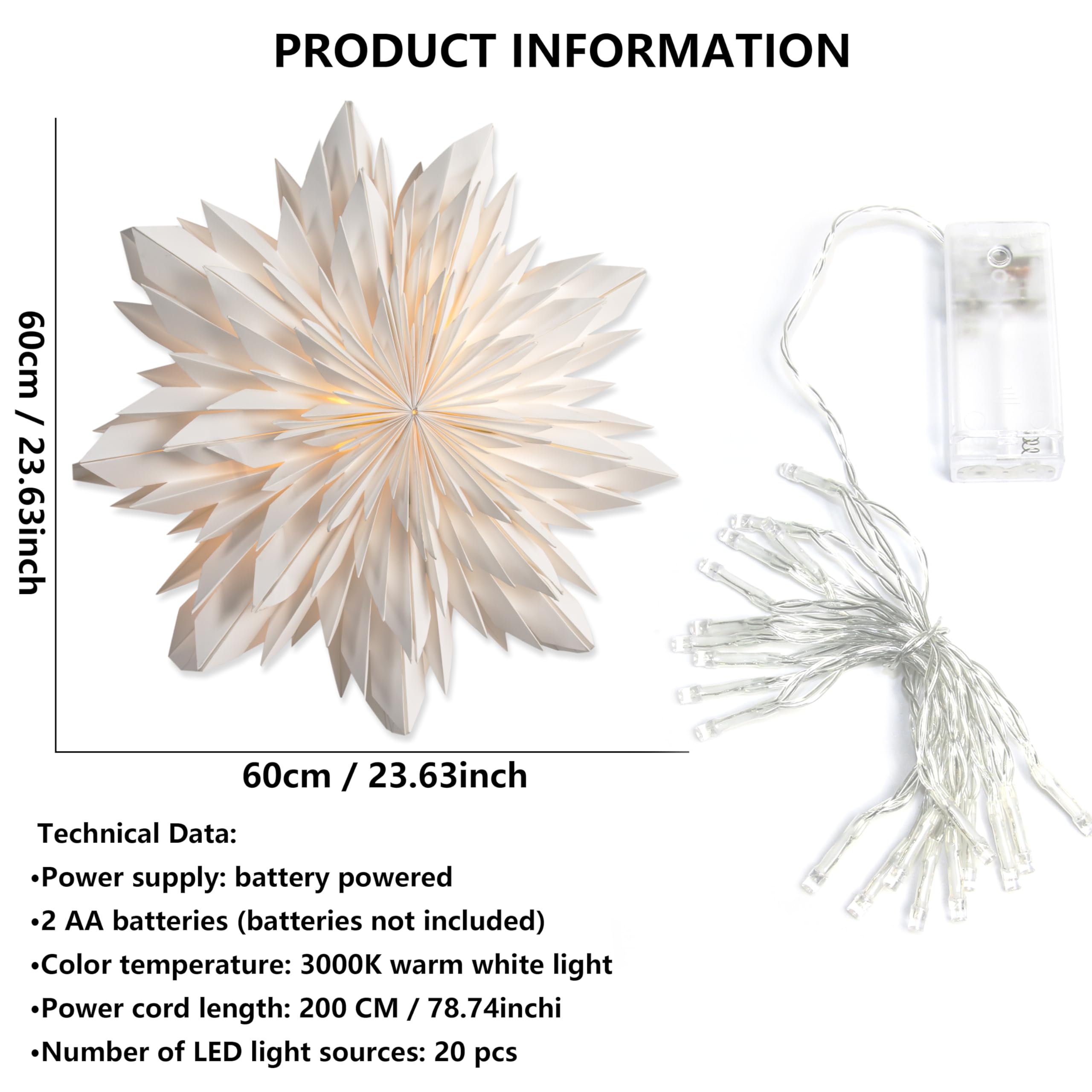 • Effortless Convenience:Experience the ease of decorating with the foldable EANLOLY star lantern. It’s simple to hang and store, saving valuable space. The LED lights (batteries not included) offer hassle- flexibility, allowing you to place this glowing star anywhere indoors without the need for cumbersome cords. Bring a warm, festive glow to your home with minimal effort