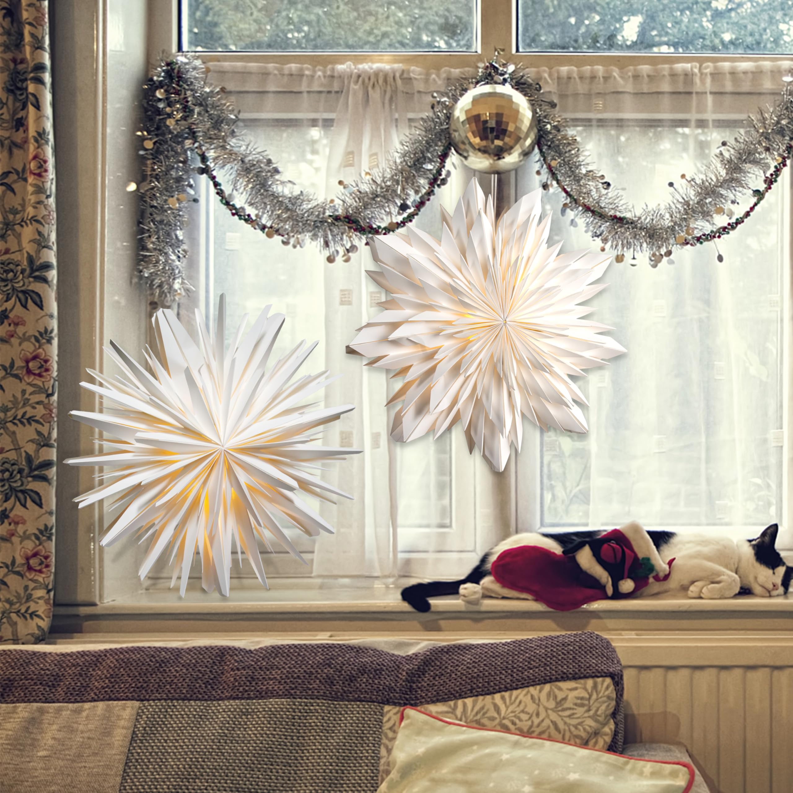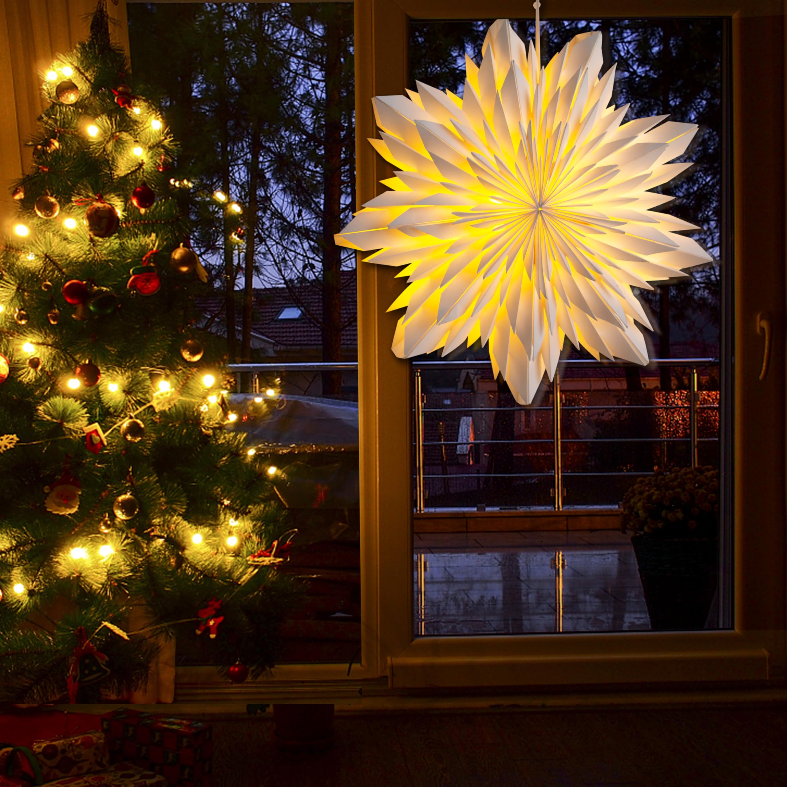 Eco-Friendly Elegance: Invest in sustainable beauty with the EANLOLY 3D LED Star Paper Lantern. Made from premium, eco-friendly paper, this christmas ornaments is designed to last for years. Enjoy a high-quality, environmentally conscious deco that will retain its stunning charm season after season, making your home not only beautiful but also green Unique Christmas Decorations: This stunning 18-inch christmas decorations indoor home decor lamp is perfect for christmas party decorations and window decor, casting a warm, magical glow with twinkle fairy lights, this light up star transforms any room into a festive wonderland. Make your indoor decorations shine and stand out, bringing a sophisticated touch to your holiday setup