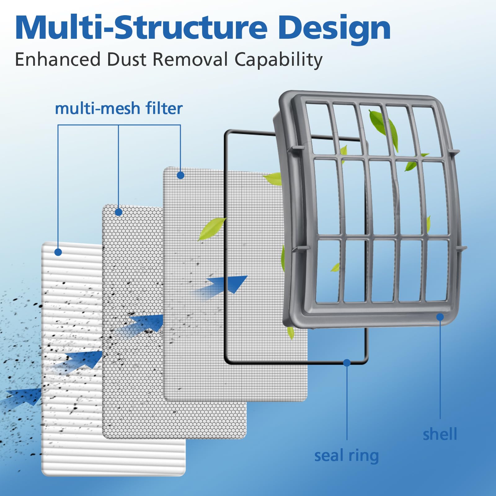 • Valuable Packs: The package includes 4 foam filters with 60 PPI density, 4 ultrathick felt filters with a textured surface, and 2 H13 HEPA filters. H13 true hepa with highefficiency filtration helps block secondary air pollution caused by cleaning effectively.