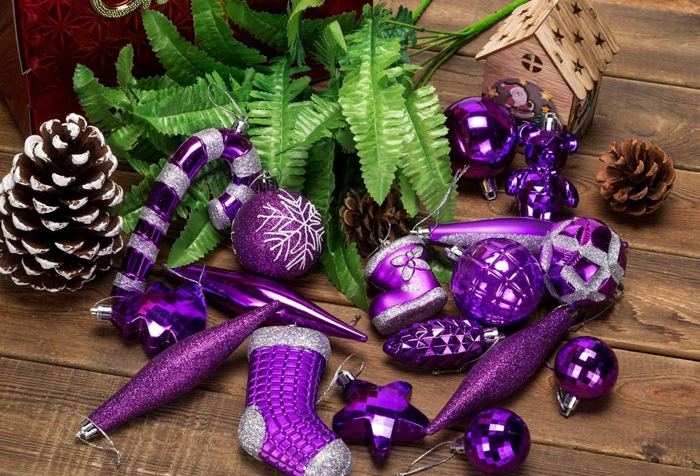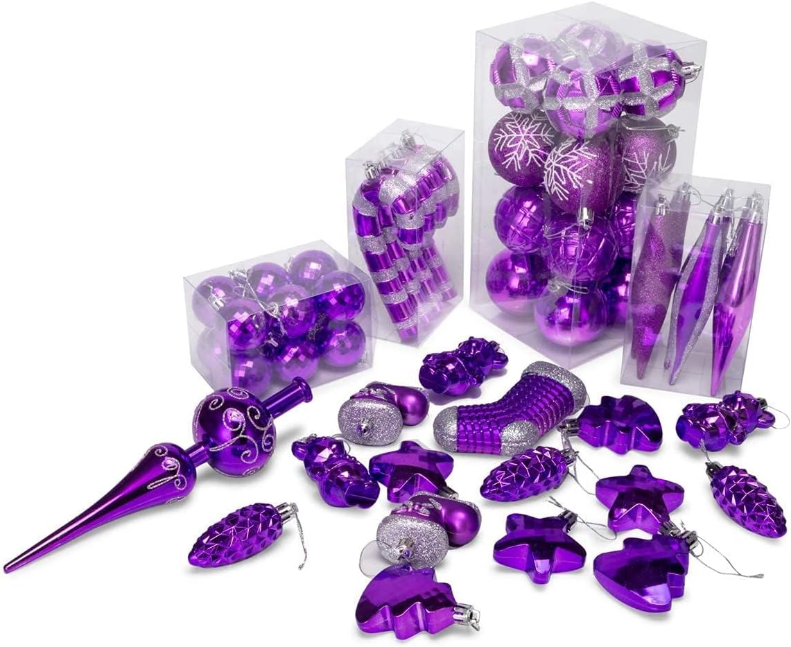 54 Pieces Assorted Christmas Ornaments Tree Decoration Baubles in Box (Purple, Box)