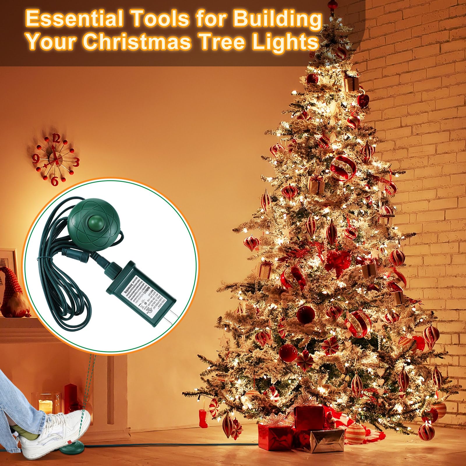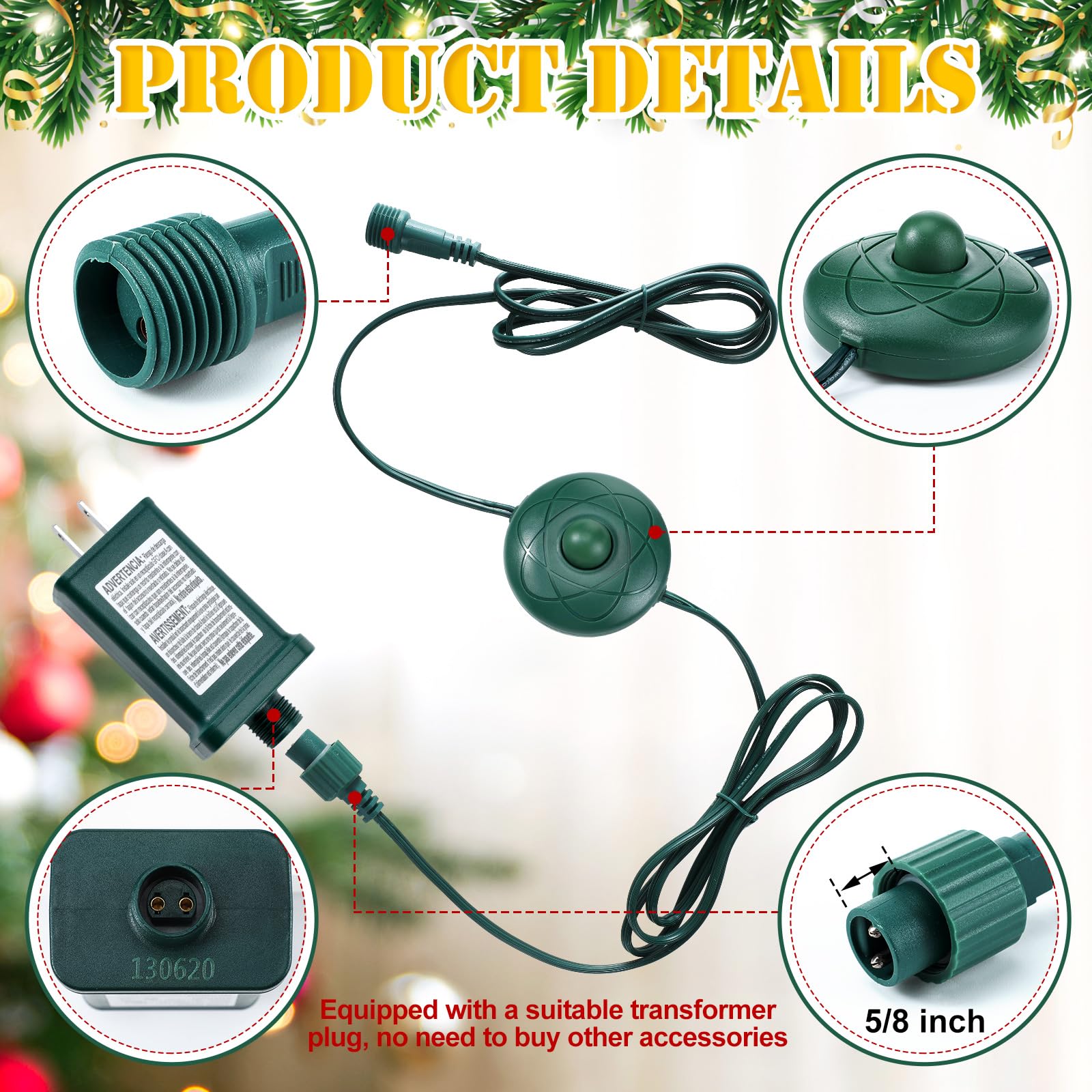 6 ft Power Cord with UL Certification LED Transformer 8 Light Modes for Christmas Tree Light Raintight Foot Switch 5/8 Inch Plug Compatible Replacement Holiday Light Connector for LED String Holiday