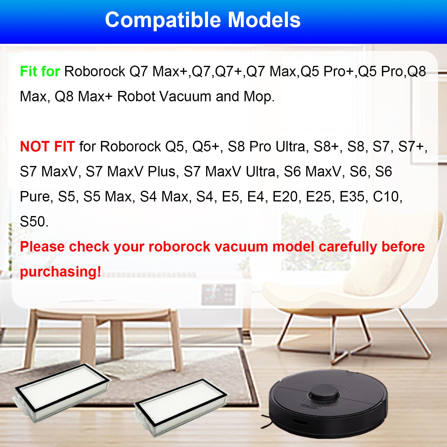 Our filters are compatible with Roborock Q7 Max+,Q7,Q7+,Q7 Max,Q5 Pro+,Q5 Pro,Q8 Max, Q8 Max+ Robot Vacuum and Mop.