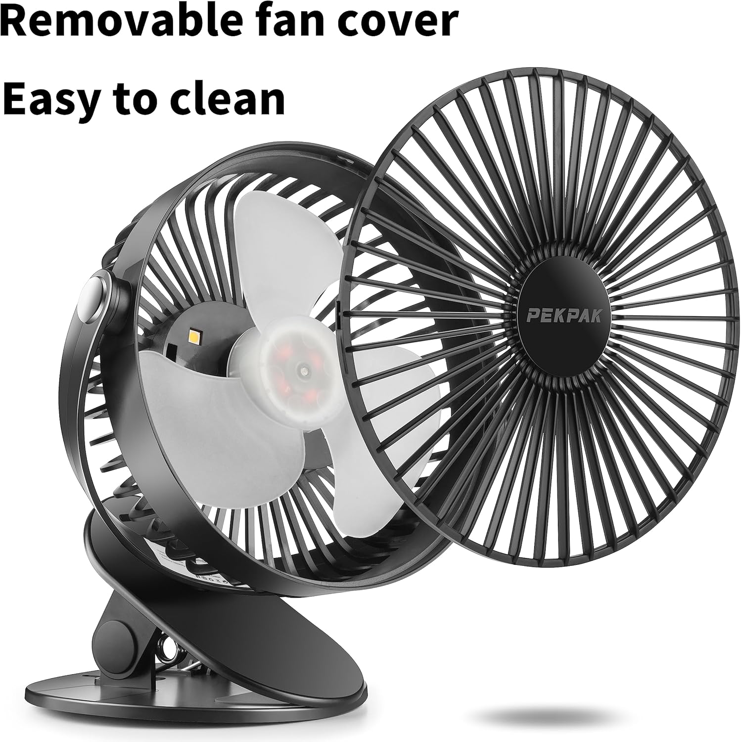 • More Quiet Easier to Clean] PEKPAK battery powered clip fan with a silent motor, turbo silent duct, allround silent noise reduction, the whole silent operation without noise, will not disturb your sleep, work and study.Removable fan cover allows you to easily clean and eliminate dust.