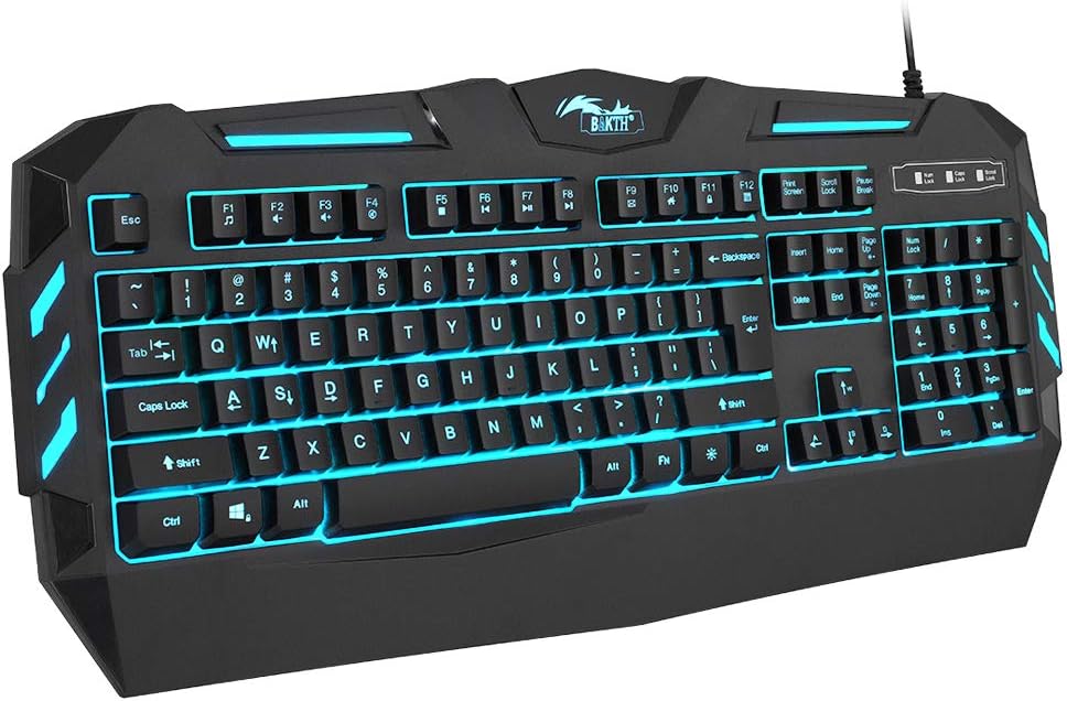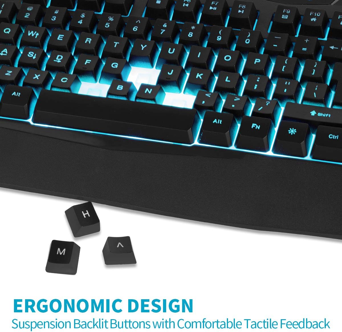 7 Colors LED Backlit Gaming Keyboard, Mechanical Feeling and Waterproof, Illuminated USB Wired Keyboard for Pro PC Gamer or Office