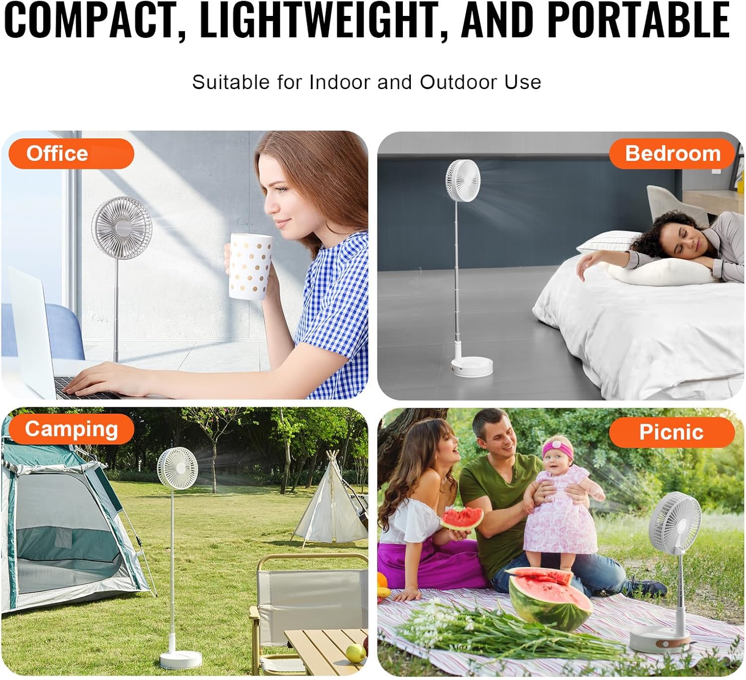 8 Inch Foldable Oscillating Standing Fan With Remote Control, 4 Speed Adjustable Portable Desk Quiet Fan, 7200Mah Rechargeable