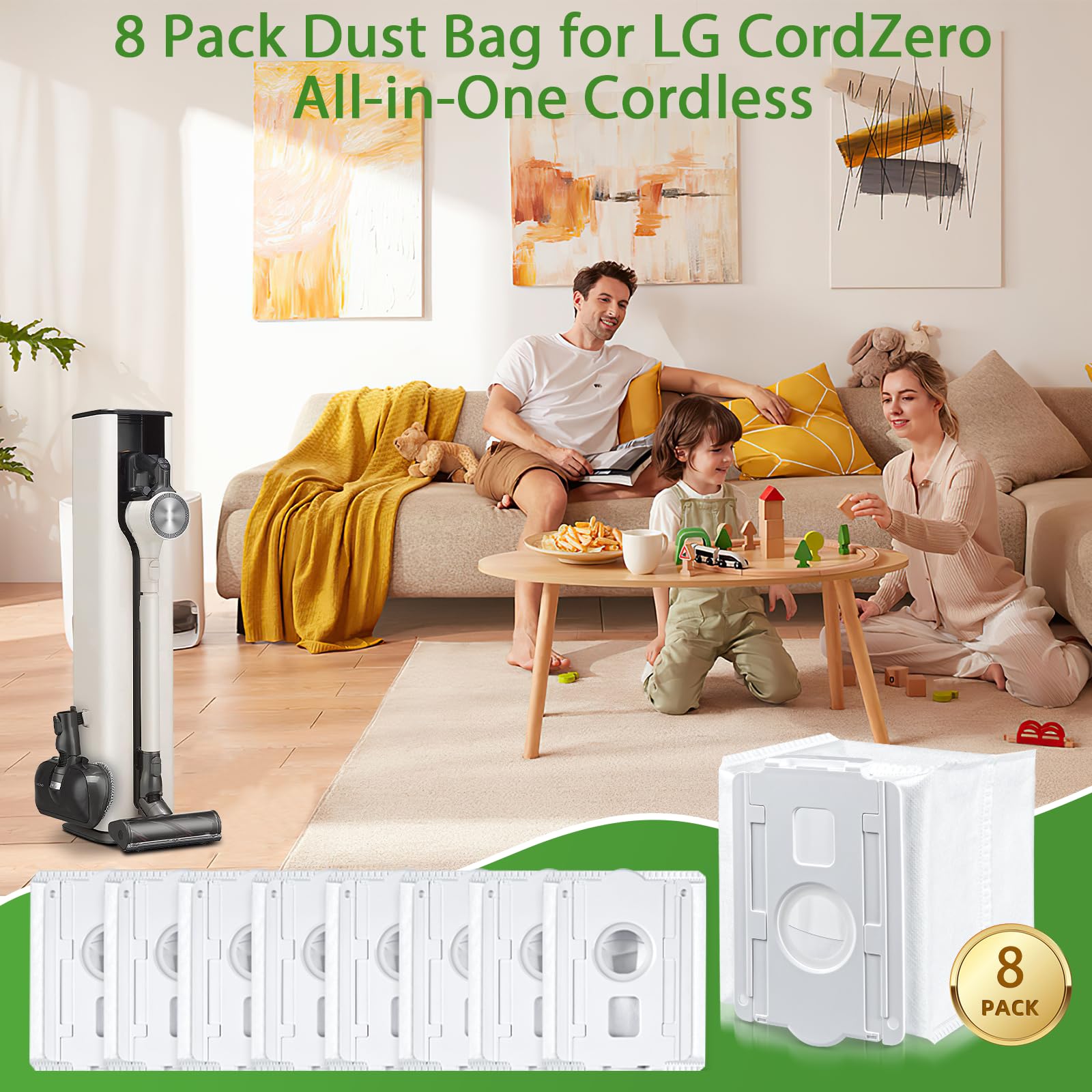 8 Pack Vacuum Dust Bag For Lg Cordzero Allinone Cordless Cleaner A939Kbgs, A938Kbgs, A937Kgms And A949Ktms, Dirt Disposal Vacuum Bags Compatible With Lg Allinone Tower