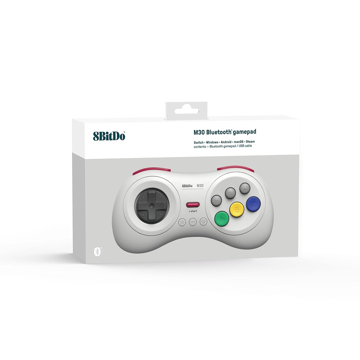 8Bitdo M30 Bluetooth Controller for Switch, Windows and Android, 6-Button Layout for SEGA’s Classic Games (White)