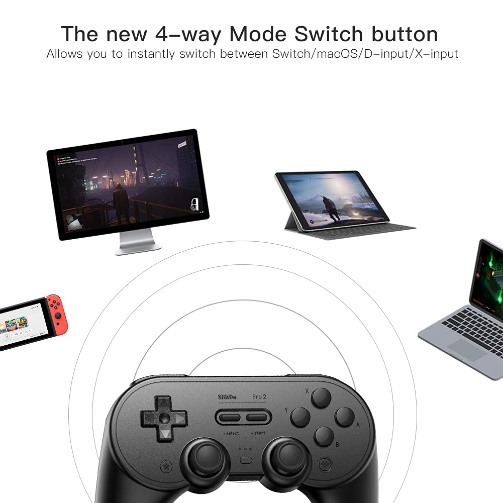 8Bitdo Pro 2 Bluetooth Controller - for Switch PC Windows Android MacOS Steam Raspberry Pi (Black)