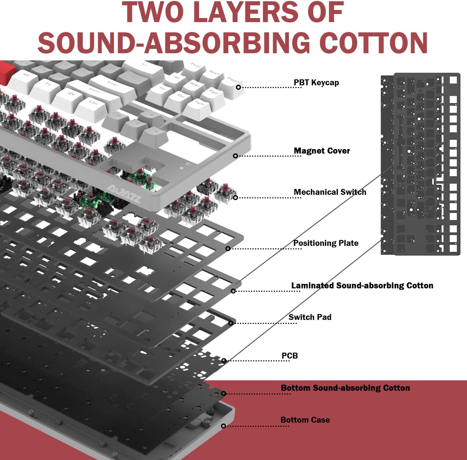 A.JAZZ AK873 Wired 87 Key TKL Retro Color Mechanical Gaming Keyboard with Rainbow Backlit Hotswap Linear Red Switch NKRO Gasket Custom Coiled Aviator C to A Cable for WinPCMac GamerWhite Gray