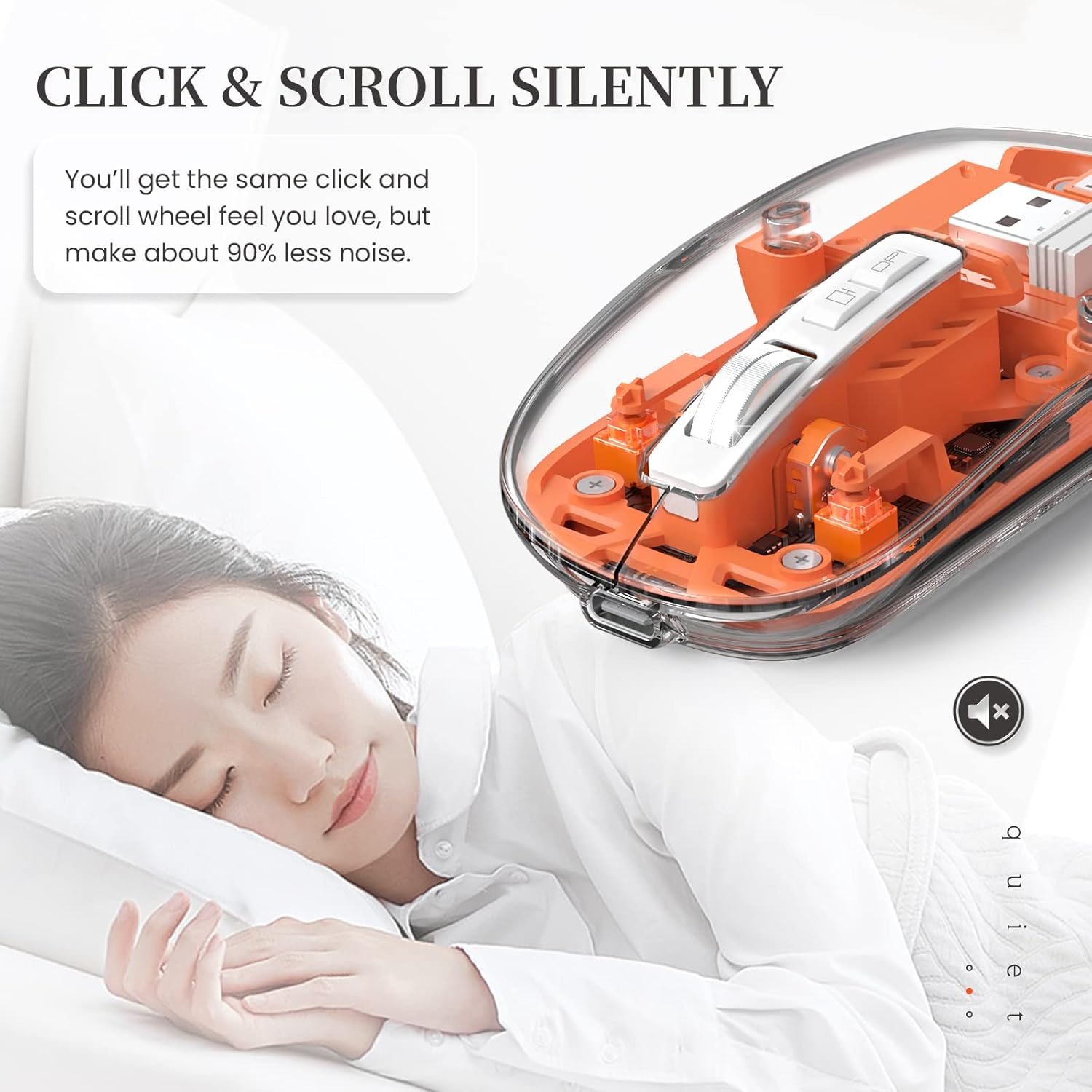 A.JAZZ Wireless Bluetooth5.1&2.4G Mini Lightweight Mouse,Transparent Clear Cool,Rechargeable Silent Computer Mice,Nano USB C Receiver,LED Battery Magic Silm For Office/PC/Mac/Laptop/Apple/ipad(Orange)