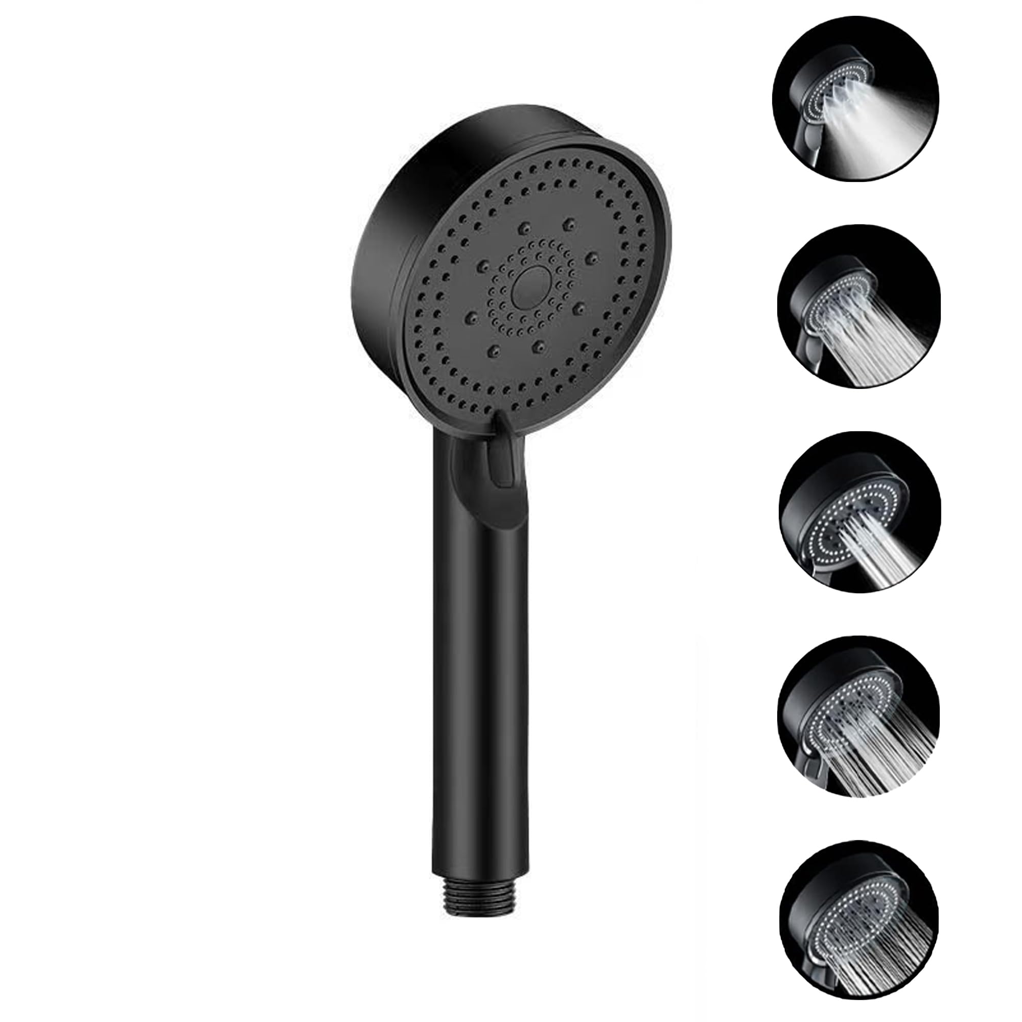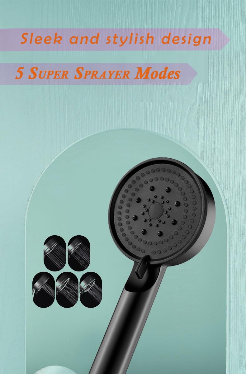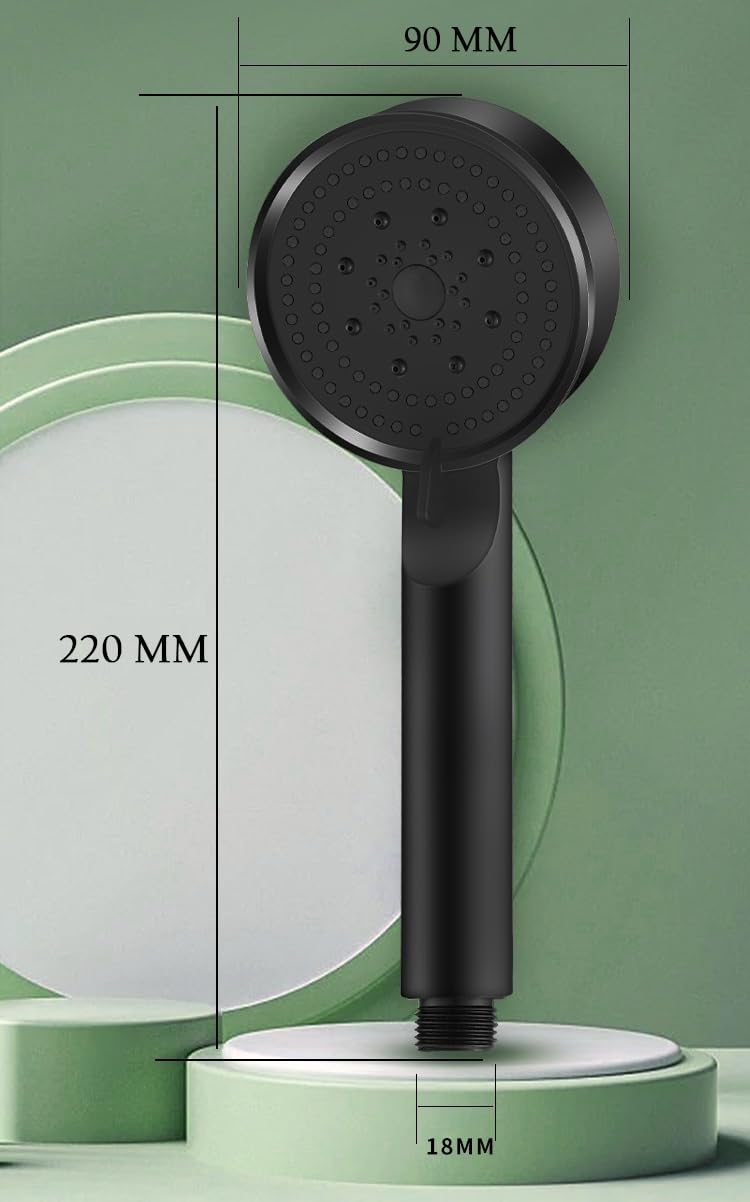 Acetap 5-Mode Round Hand Shower - Black Elegance with ABS Material - Effortless Setup Lightweight Wide Coverage Spray. (Head Only)