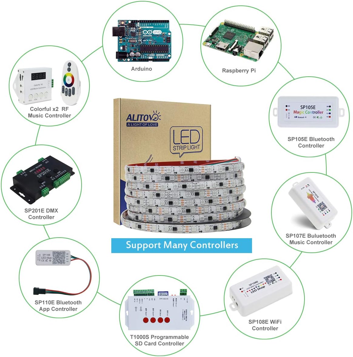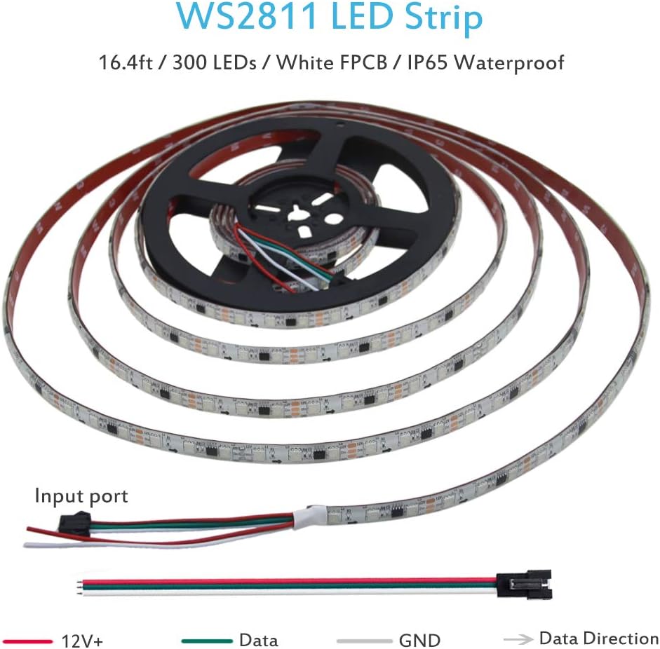 ALITOVE WS2811 Addressable RGB LED Strip 12V Programmable LED Pixel Strip Lights 16.4ft 300 LEDs Dream Color Digital LED Flexible Rope Light Waterproof IP65 with 3M VHB Heavy Duty Self-Adhesive Back