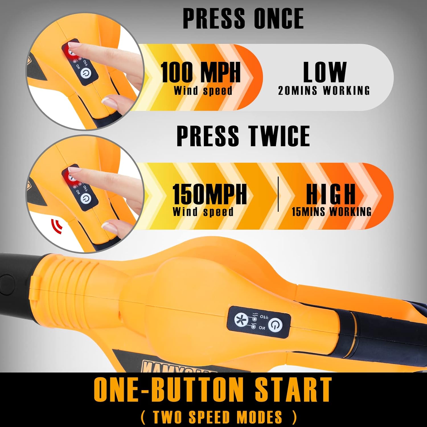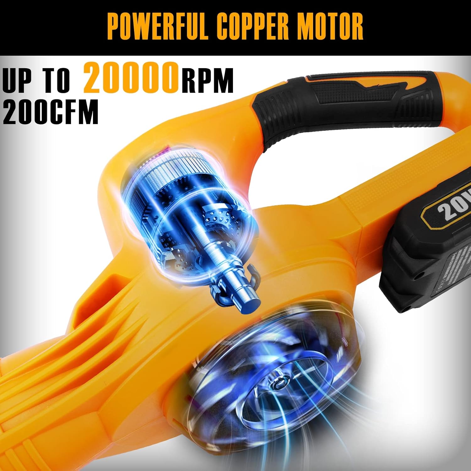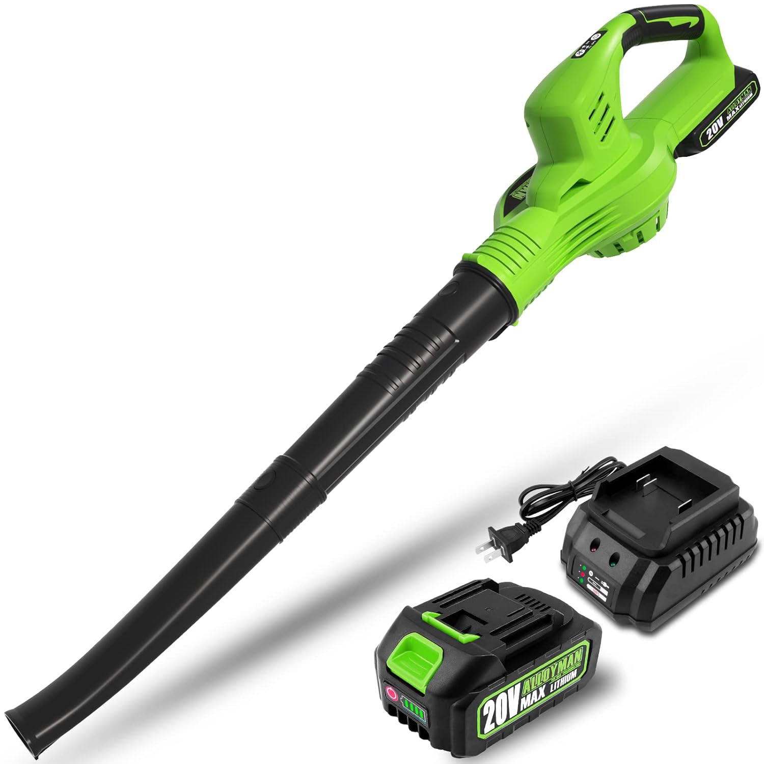 Alloyman Leaf Blower, 20V Cordless Leaf Blower, One-Button Start Leaf Blower Battery Powered, with 2.0Ah Battery & Charger, Electric Leaf Blower for Yard Cleaning/Snow Blowing