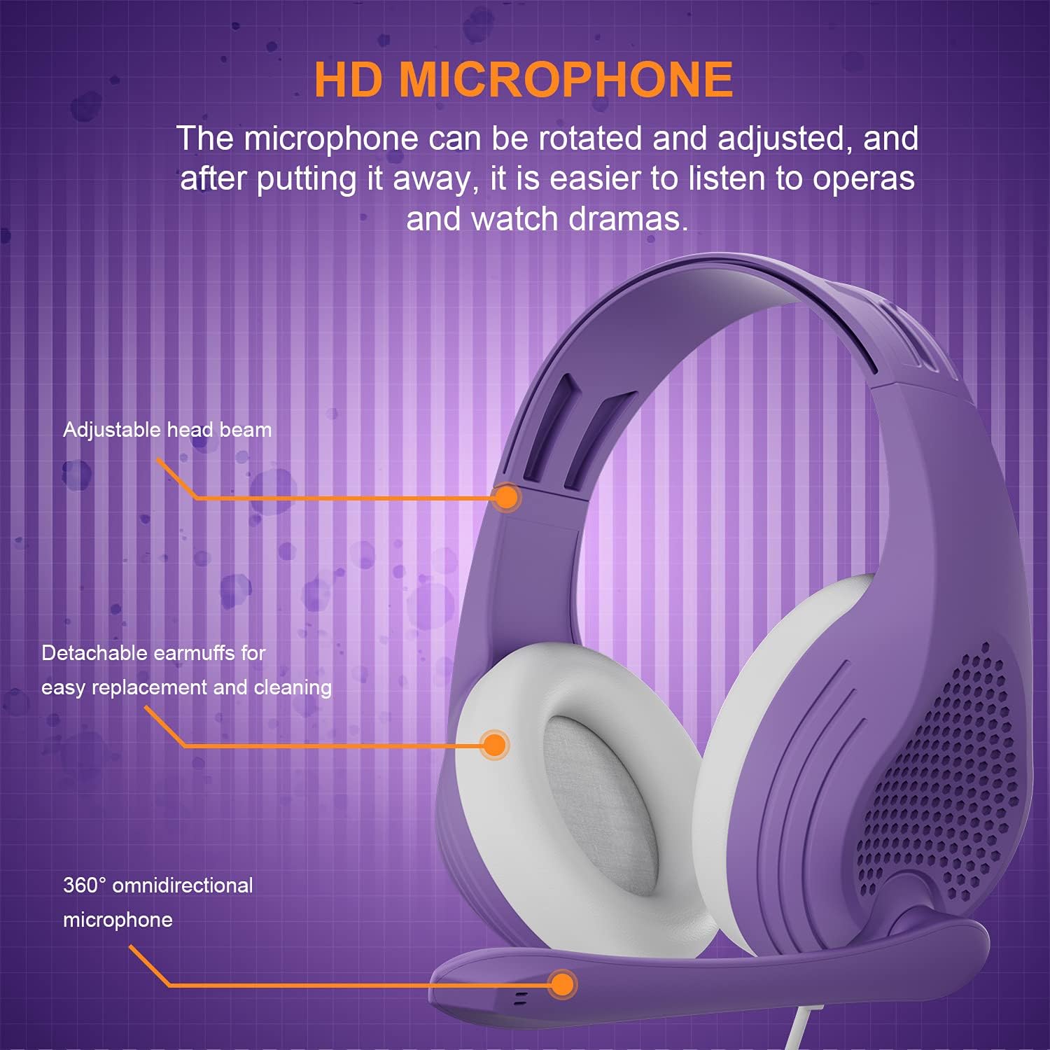 Anivia Computer Noise Cancelling Wired Headphones with Microphone - 3.5mm Purple Headset Gaming Headsets with Mic for Multi-Platform for Kids
