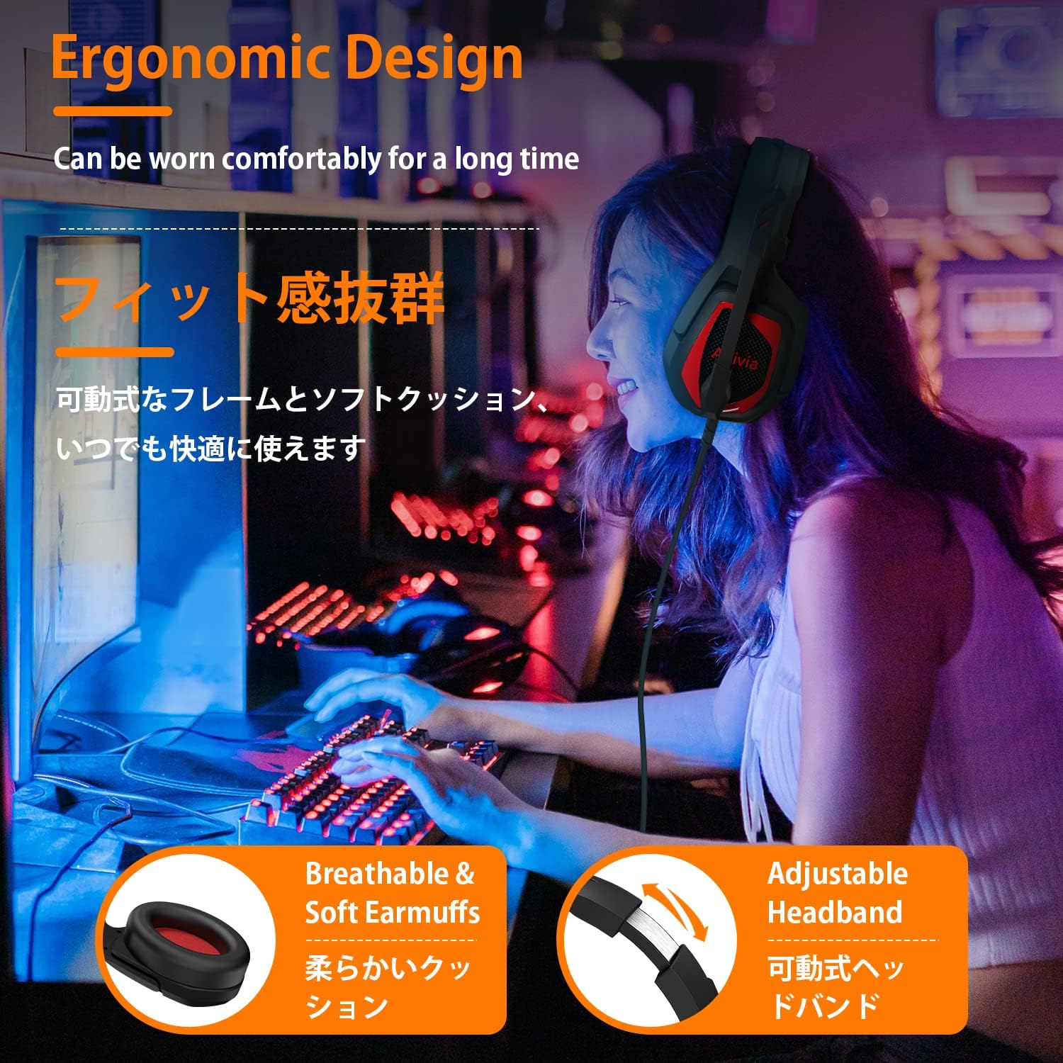 Anivia Gaming Headset with Noise Isolating Microphone, HD Stereo Sound for PS4/PS5 Xbox Switch PC (Red, Wired 3.5mm Jack)