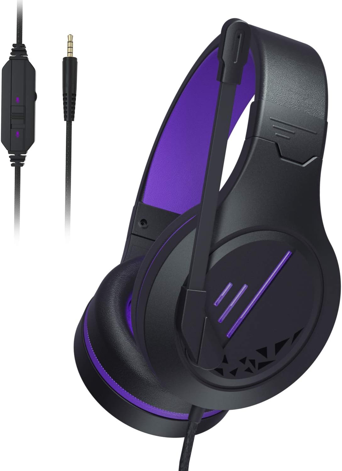Anivia Stereo Gaming Headset for PS4, PC, Xbox One Controller, Noise Cancelling Over Ear Headphones with Mic, Soft Memory Earmuffs for Laptop/Mac/Nintendo/PS3 Games(Purple)