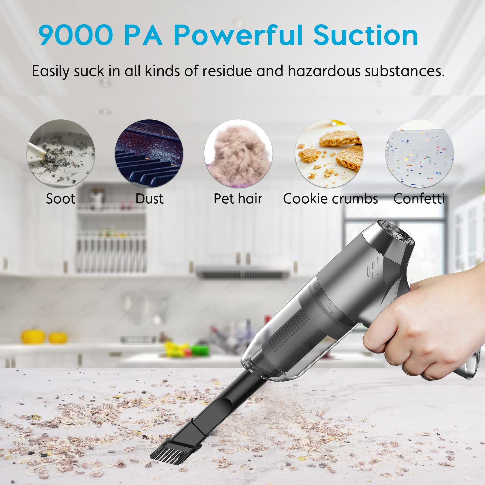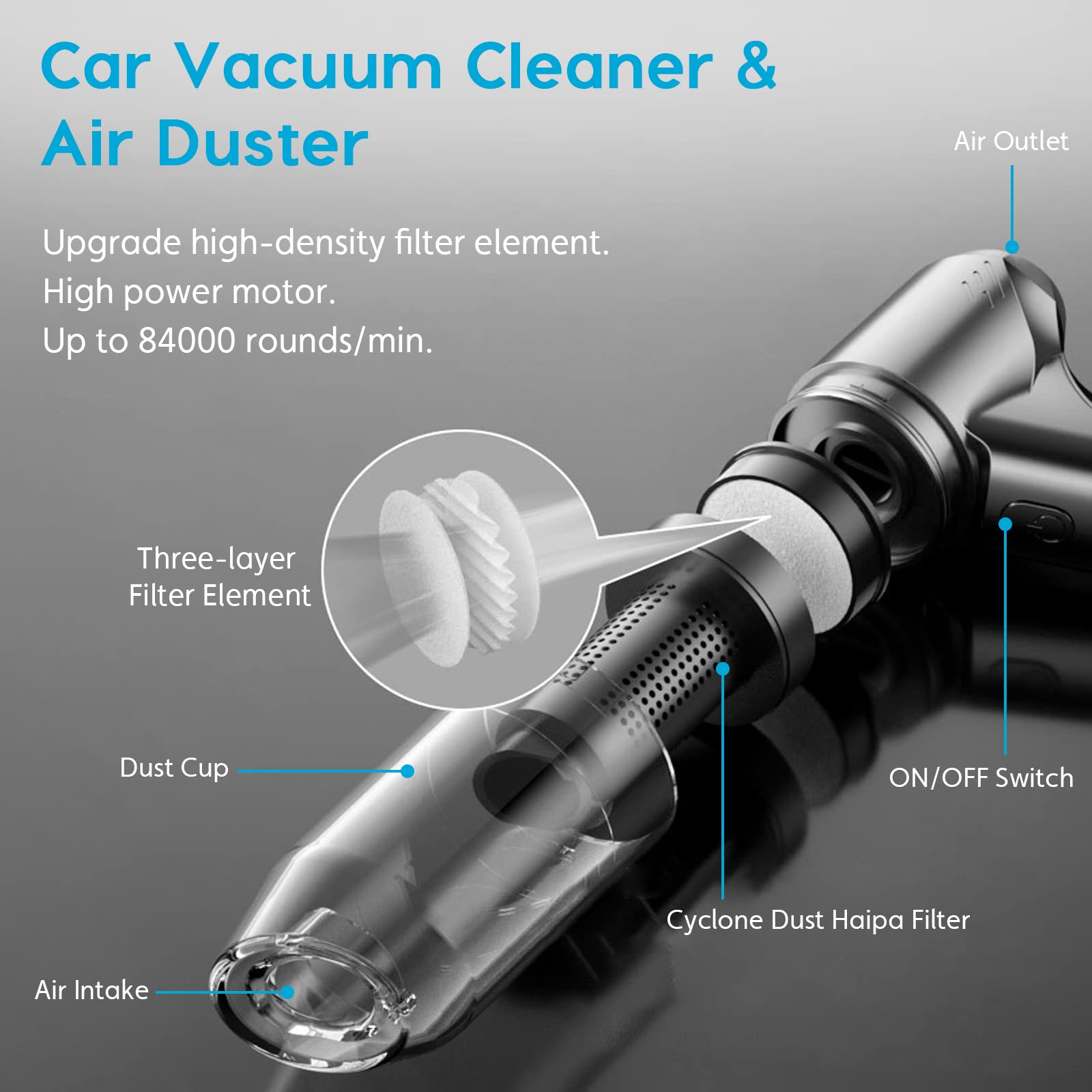 Aorika Car Vacuum Cleaner Cordless, Handheld Vacuum&Air Duster, 9000Pa Suction High Power Wetdry Use Vacuum Cleaner With Multinozzles For Vehiclehomeoffice, Multiple Hair