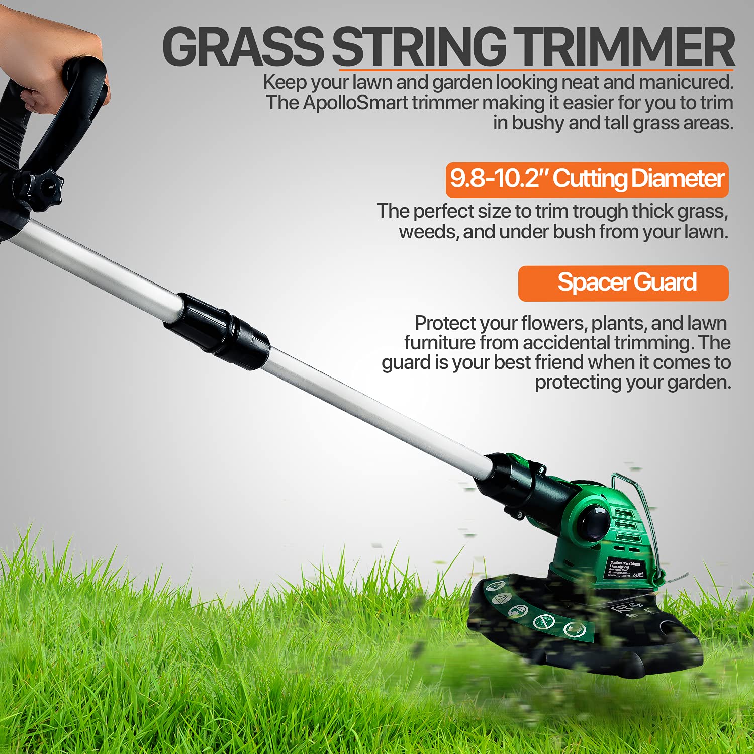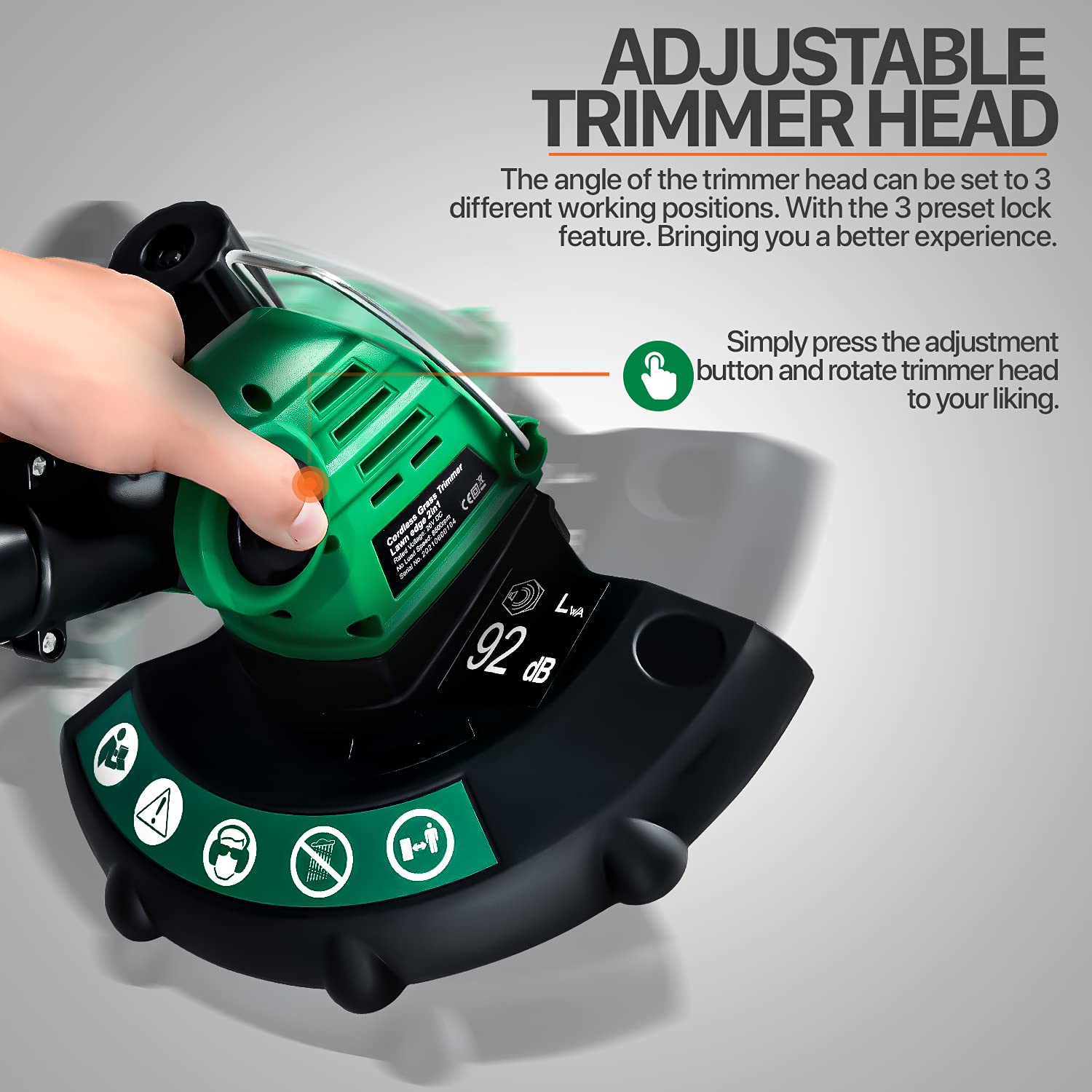 This 2-In-1 Brush Motor system easily converts from Trimmer to Edger in seconds, while providing a cutting width of 9.8-10.2" inches, a no load run time of 55 minute, The Guard Wheel supports and guides the edger, giving you straighter lines and cleaner cutsLightweight, ergonomic and balanced design will help you move freely with professional quality and maximum control/comfort, including a Telescopic Adjustable Tube of 1.5" inches and an Automatic Feed Spool that auto feeds trimmer line as neededECO-FRIENDLY - (Green and Safe), unlike gasoline-powered devices, electric-powered units produce no smog/fumes/emissions and are both gas and exhaust free, while being quieter when compared to gas powered unitsOur battery operated 20V 2Ah Brush Cutter/Edger Tool will greatly amplify your freedom, we assure that each battery is lighter, more powerful, and lasts longer; This unit only needs 1 hour charge to meet your working requirementsAlways operate the product with eye and hand protection. This is electric powered Trimmer/Edger does not require fuel to operate; BEST APPLICATIONS - Outdoor use for gardening, lawn care/mowing, edging, forestry and landscaping