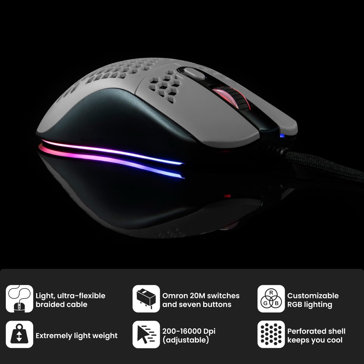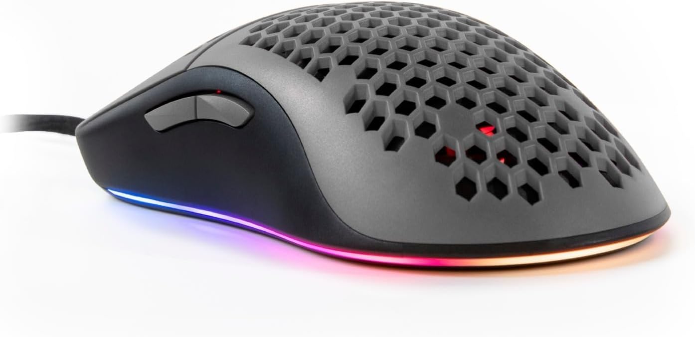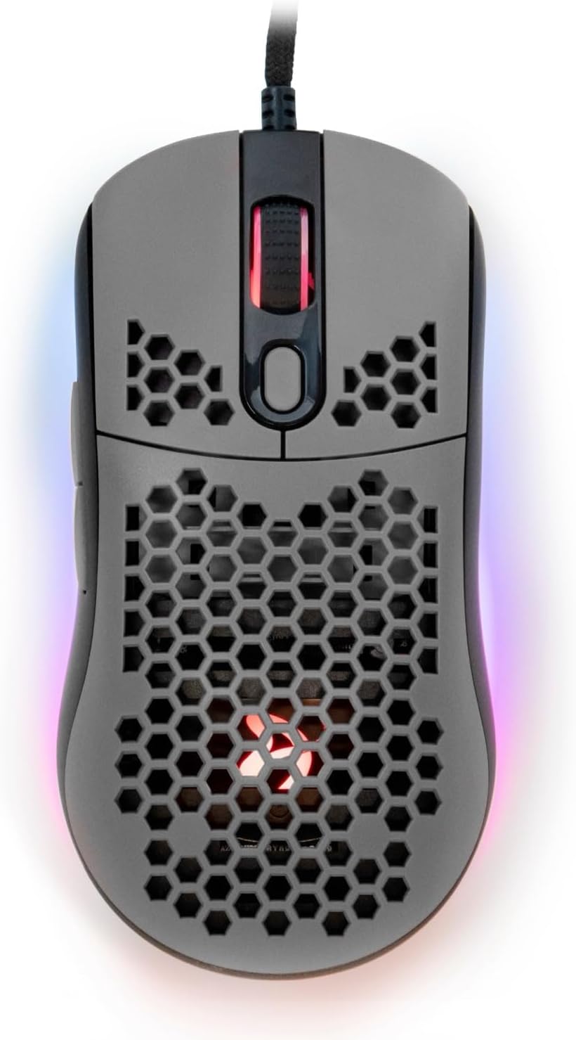 Arozzi Favo Ultra Lightweight Customizable RGB Gaming Mouse with Honeycomb Pattern Pixart 3389 Sensor and Omron 20M Switches - Grey