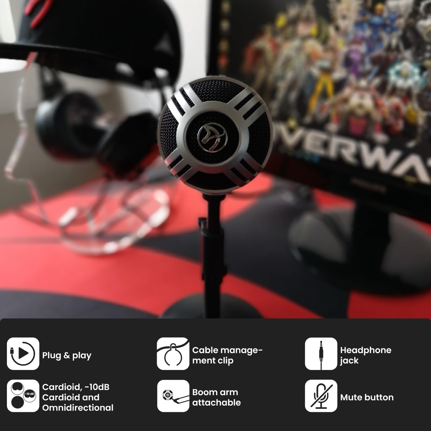 Arozzi - Sfera Professional Grade Gaming/Streaming/Office USB Microphone - Cardioid, Cardioid -10dB, and Omnidirectional Polar Patterns, Boom Arm Compatible - Silver