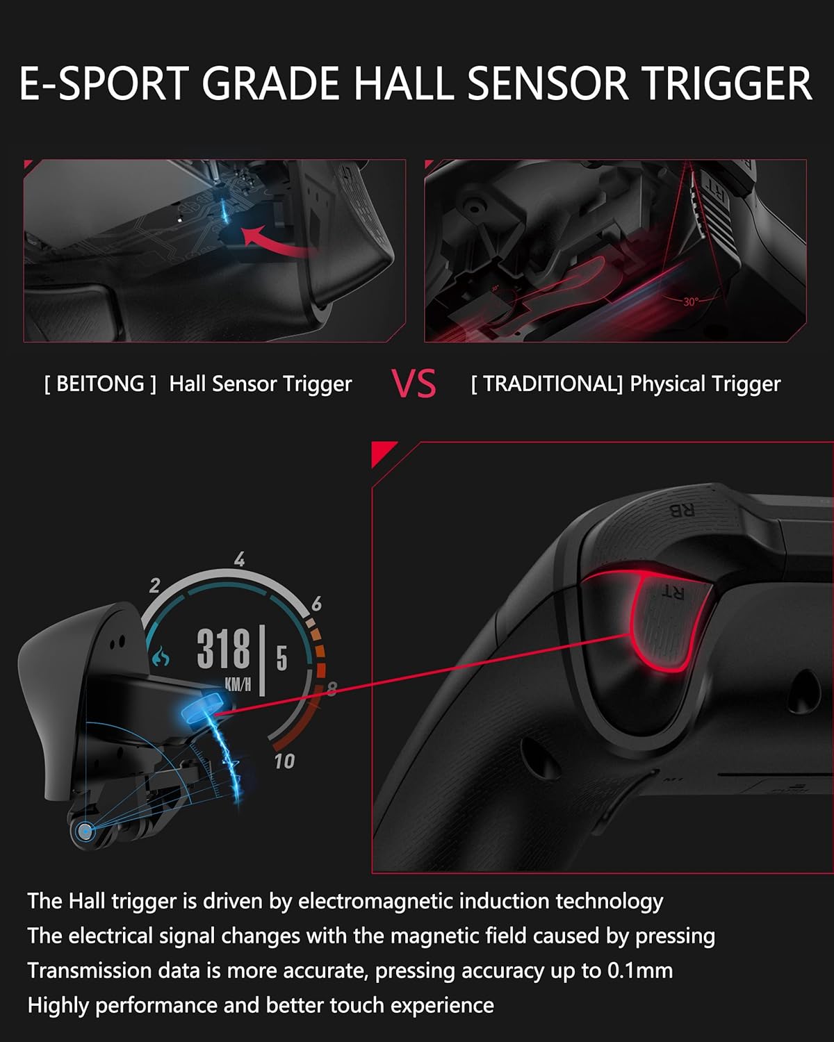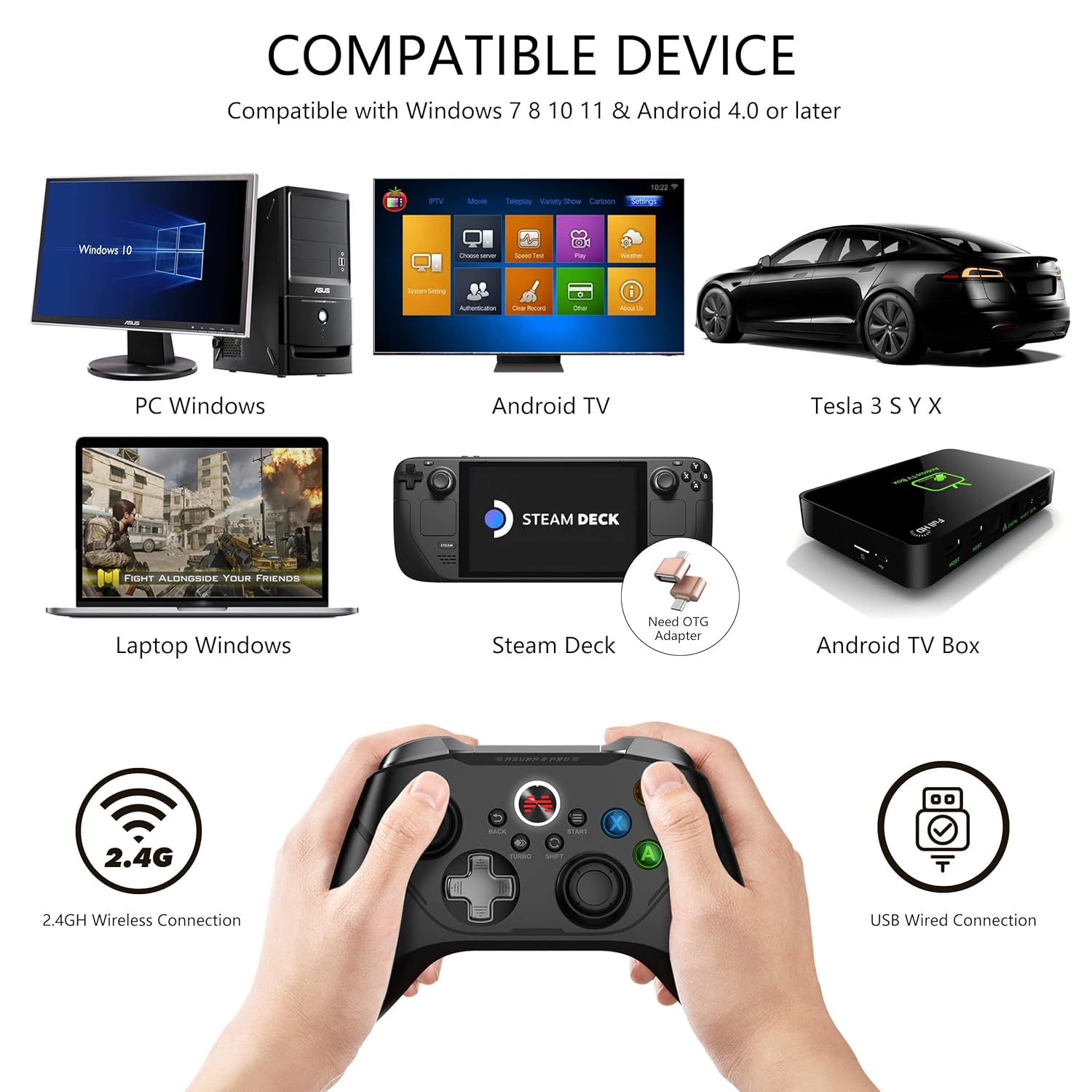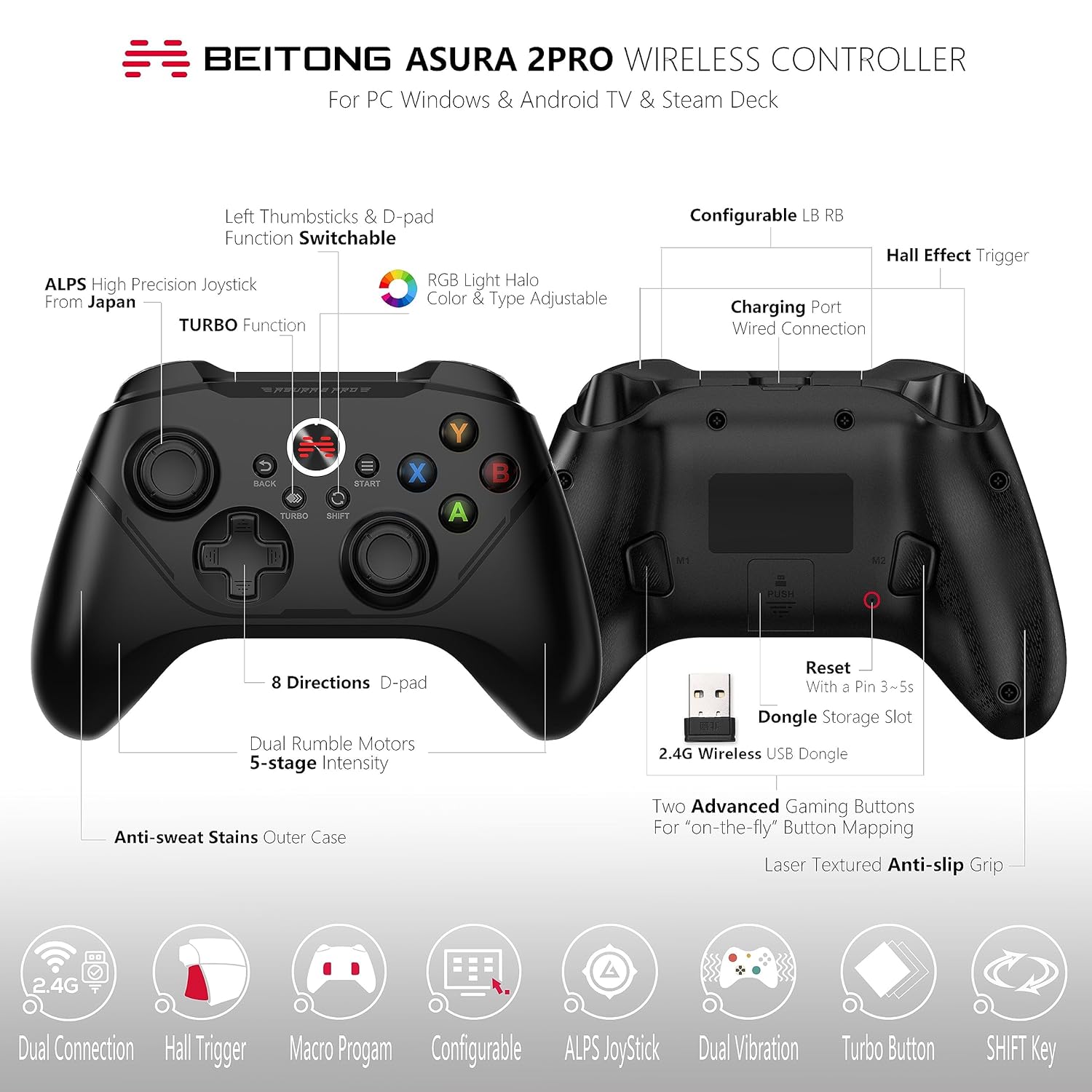Asura 2 Pro PC Game Controller Wireless Gamepad Hall Effect Trigger Joystick For Windows 7 8 10 11,Android TV,Steam,Tesla,Simulator,with Programmable M Buttons (Black)