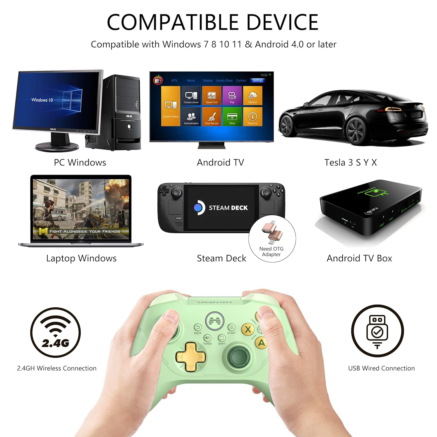 Asura 2 Pro PC Gaming Controllers 2.4G Wireless Dual Vibrate Gamepad Joystick For Windows 7 8 10 11 Android TV Steam Simulater,Mechanical Keys/Hall Effect Trigger (Avocado)