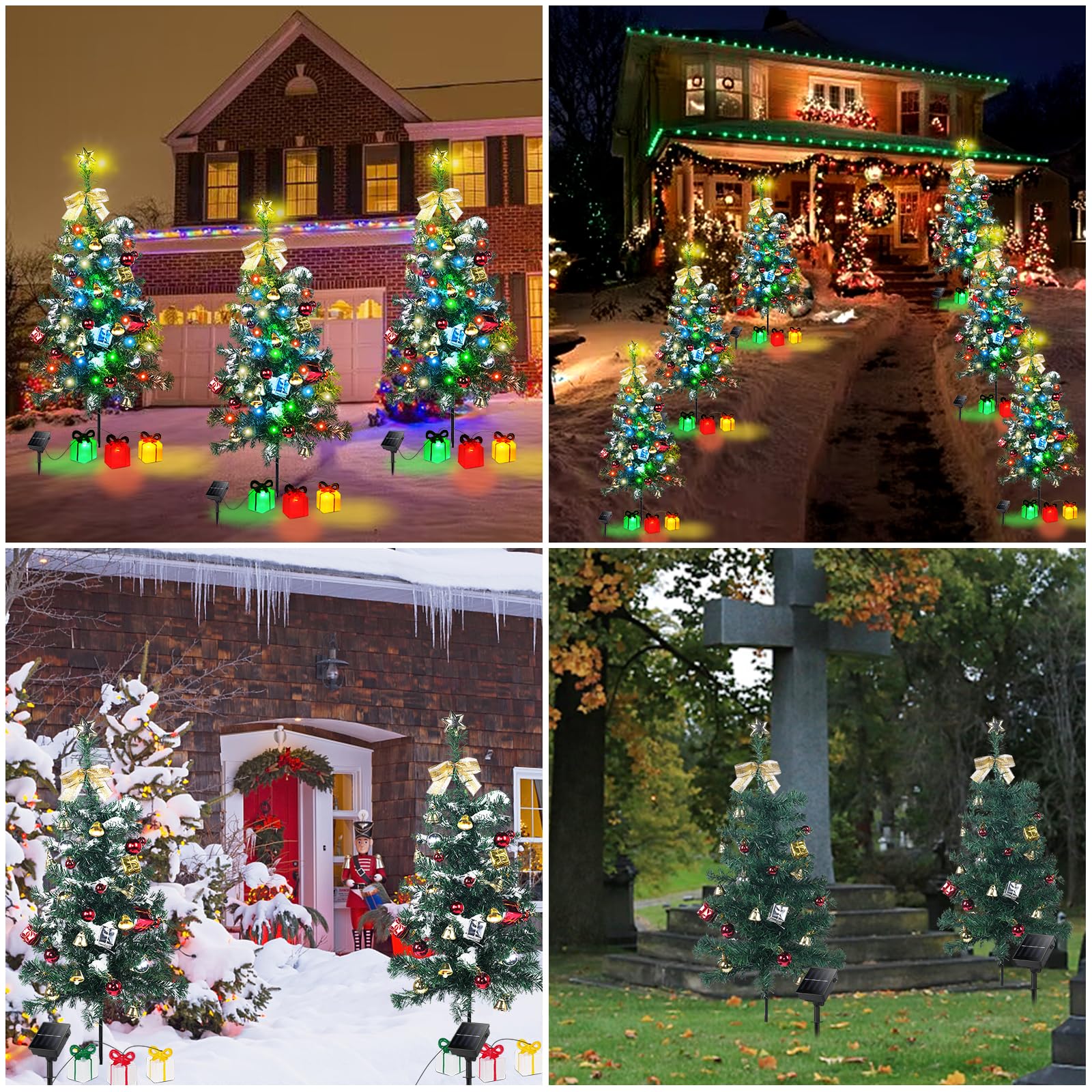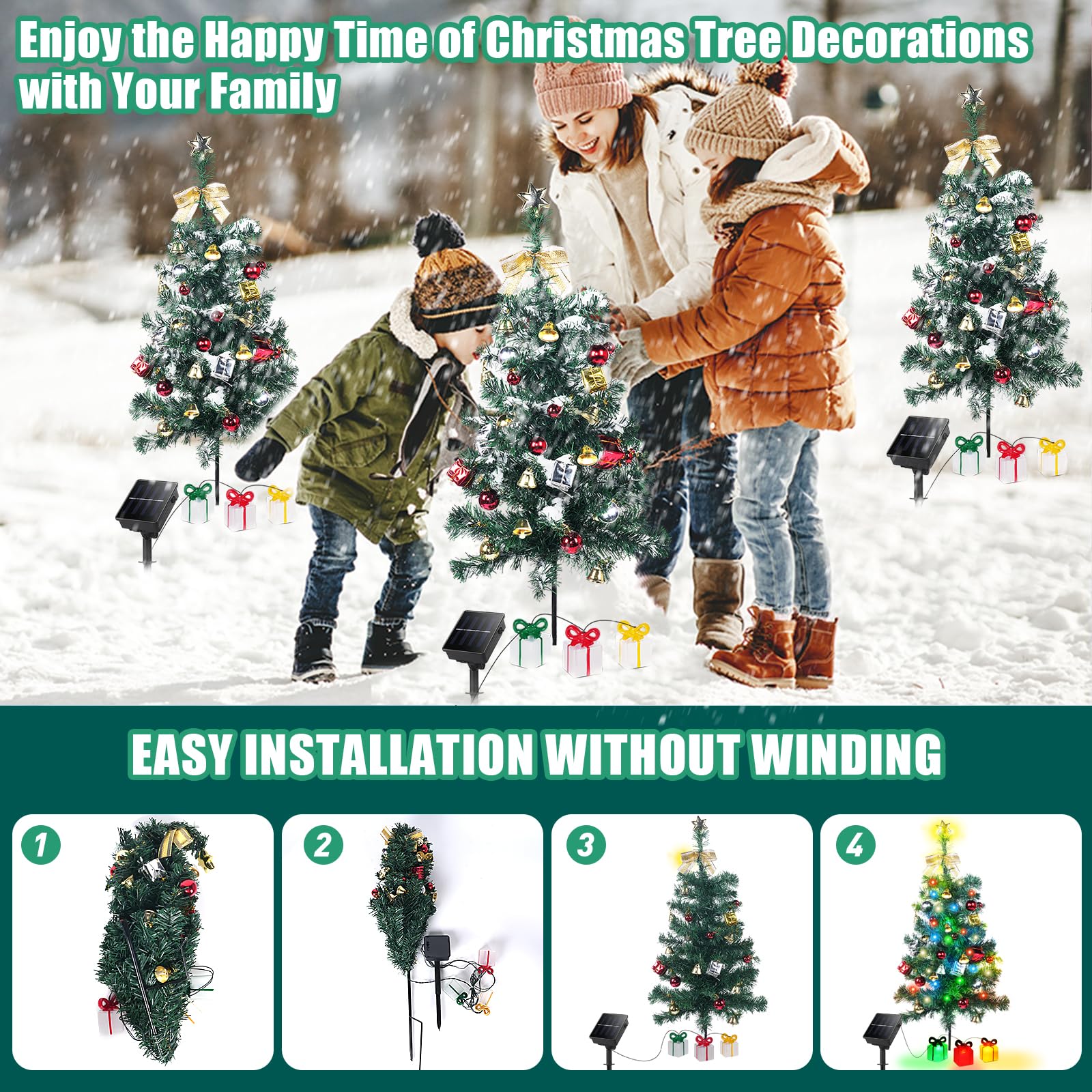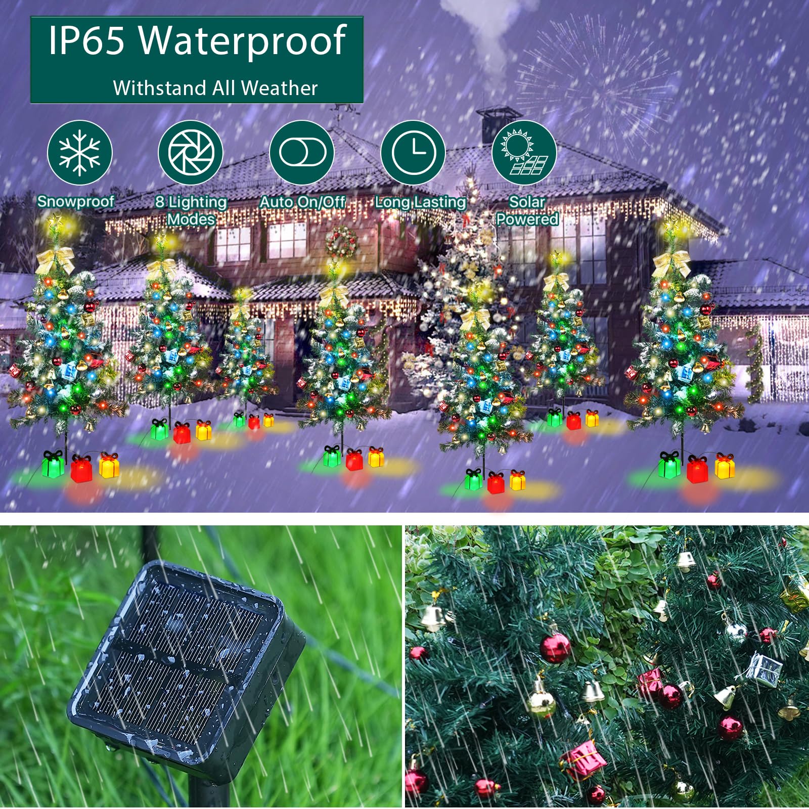 • 【Waterproof, Auto ON/OFF & Easy Installation】: Waterproof grade of the outdoor Christmas tree lights is 65 Charging in the sun during the day, outdoor Christmas lights automatically lit at night After getting the outdoor Xmas tree, you only need to spread the Christmas branch and plug it into the ground to use, without winding lights and installing decorations, ready-to-use, very simple