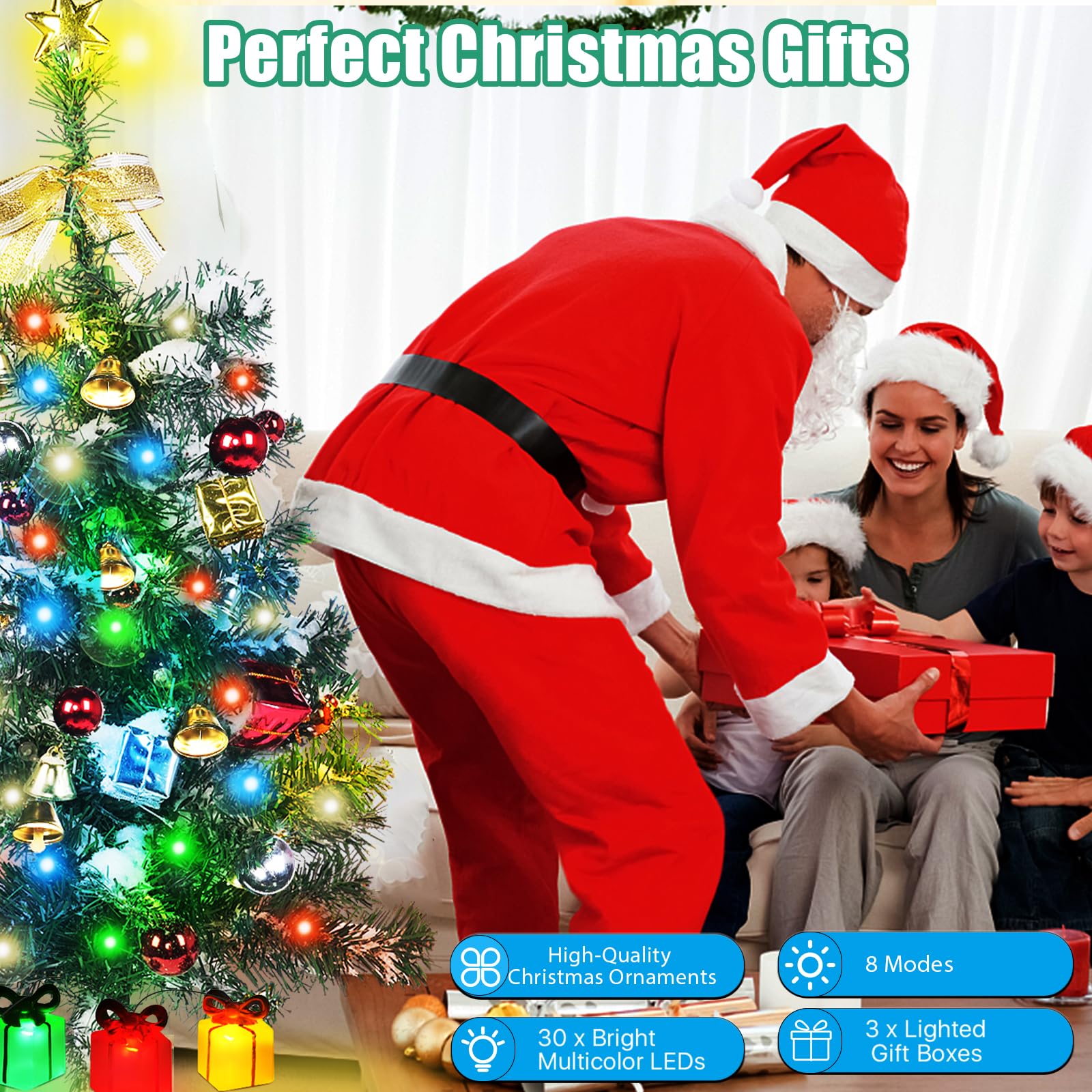 【Mini Solar Christmas Trees】: The Christmas tree of Christmas decorations is 80cm (31IN) tall and 35cm (14IN) wide when unrolled. There are golden star, golden bow, s boxes ( gold 1pcs, silver 1pcs, red 1pcs), ball ( red 2pcs, silver 2pcs, gold 1pcs), bell 8pcs, berry 4pcs, Christmas boxes ( Gold 1pcs, red 1pcs, green 1pcs) and 33 led lights on the tree. No need to assemble, ready to use, very convenient 【High Quality】: The ly d solar powered Christmas tree lights are equipped with a single crystalline silicon solar panel (2V 160MAH) and a nickel-metal hydride battery (1.2V 800MAH), charging 6-8 hours in the sun during the day, the Xmas lights can work all night (more than 10 hours), berries and balls will not fade and drop