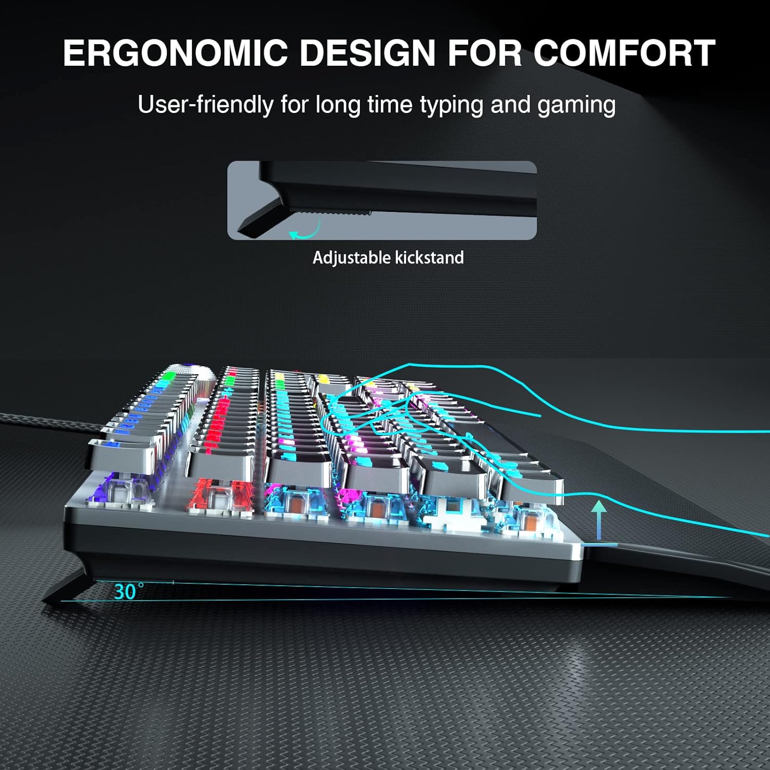 AULA F2088 Mechanical Gaming Keyboard, Tactile Brown Switches, LED Rainbow Backlit, Volume Controls, Removable Wrist Rest, Unique Cool Square Keycaps, Full Size Wired Keyboard for Windows/Mac/PC