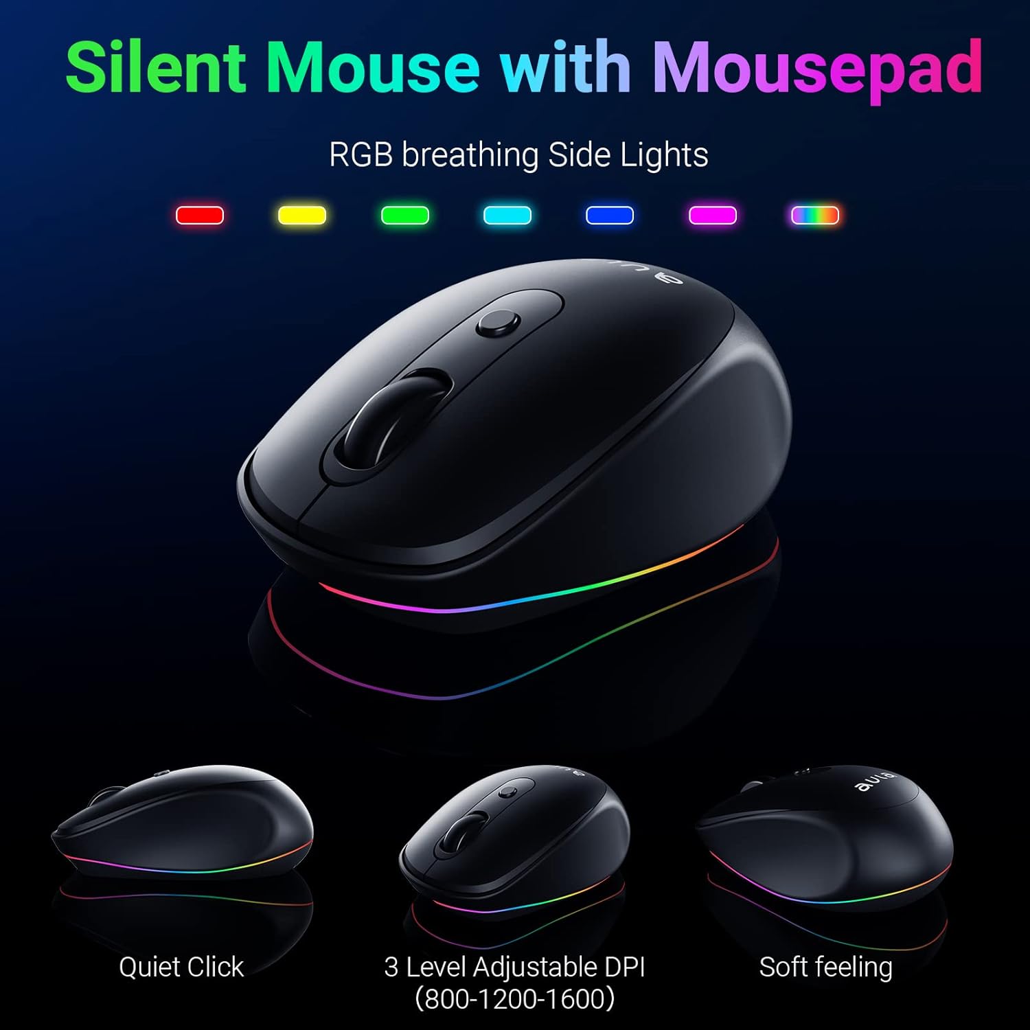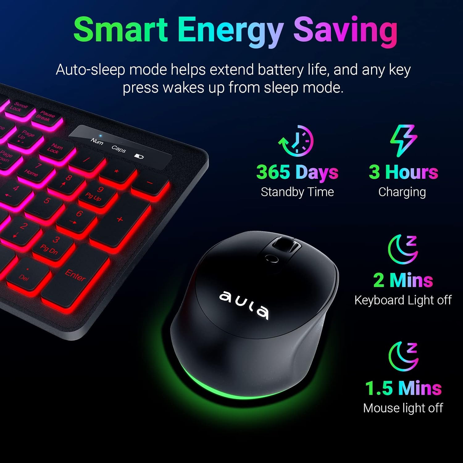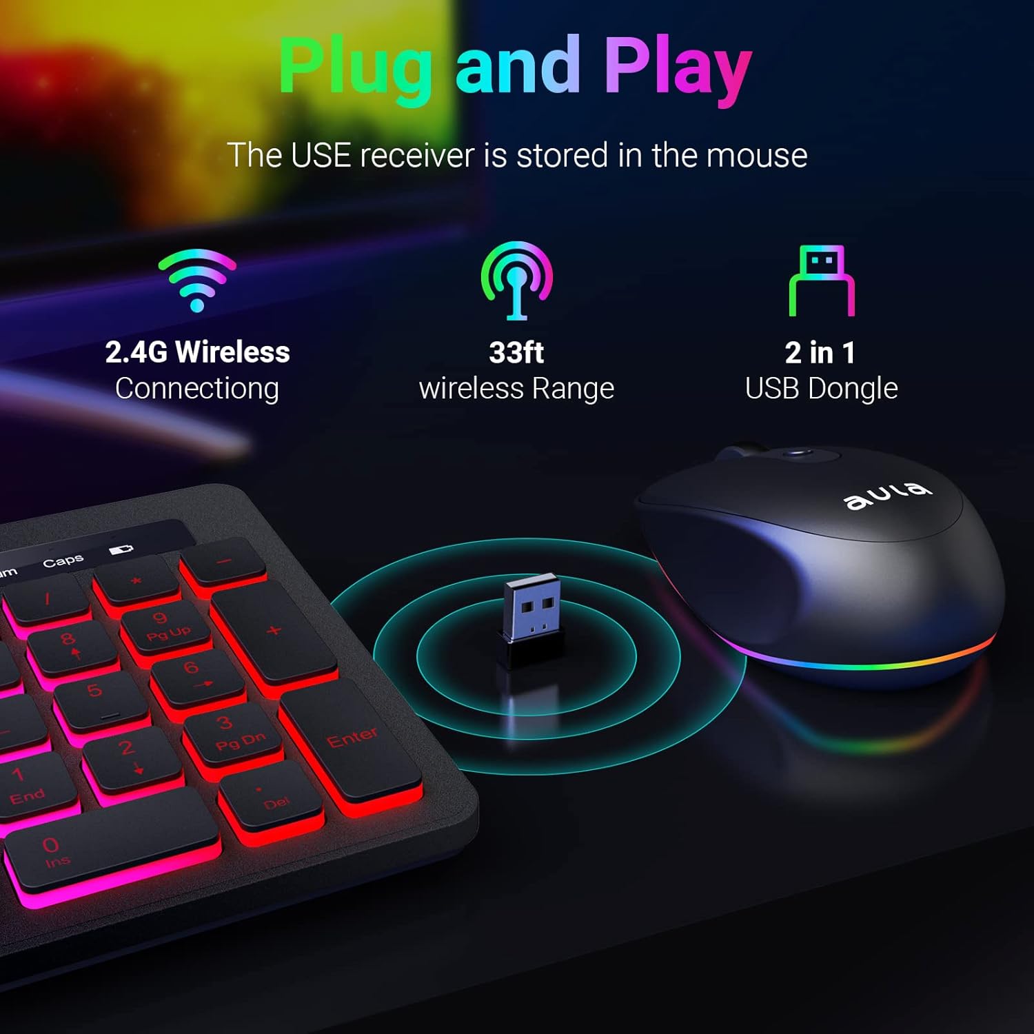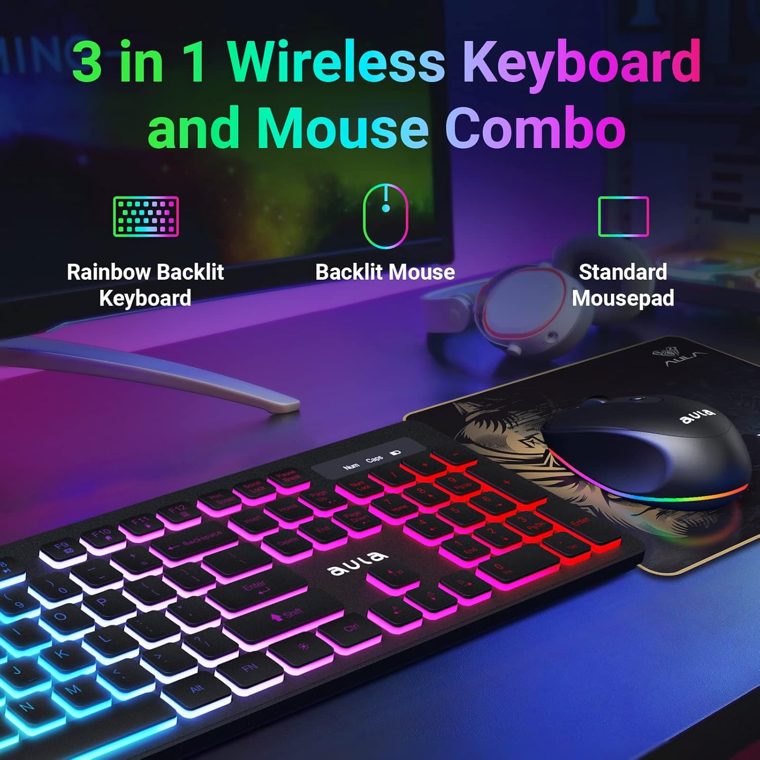 AULA Wireless Keyboard and Mouse Combo, RGB Backlit, Rechargeable & 2.4GHz Quiet Wireless Gaming Keyboard Mouse, Full-Size Ergonomic Keyboard Mouse & Mousepad Combo for PC, Windows and Mac