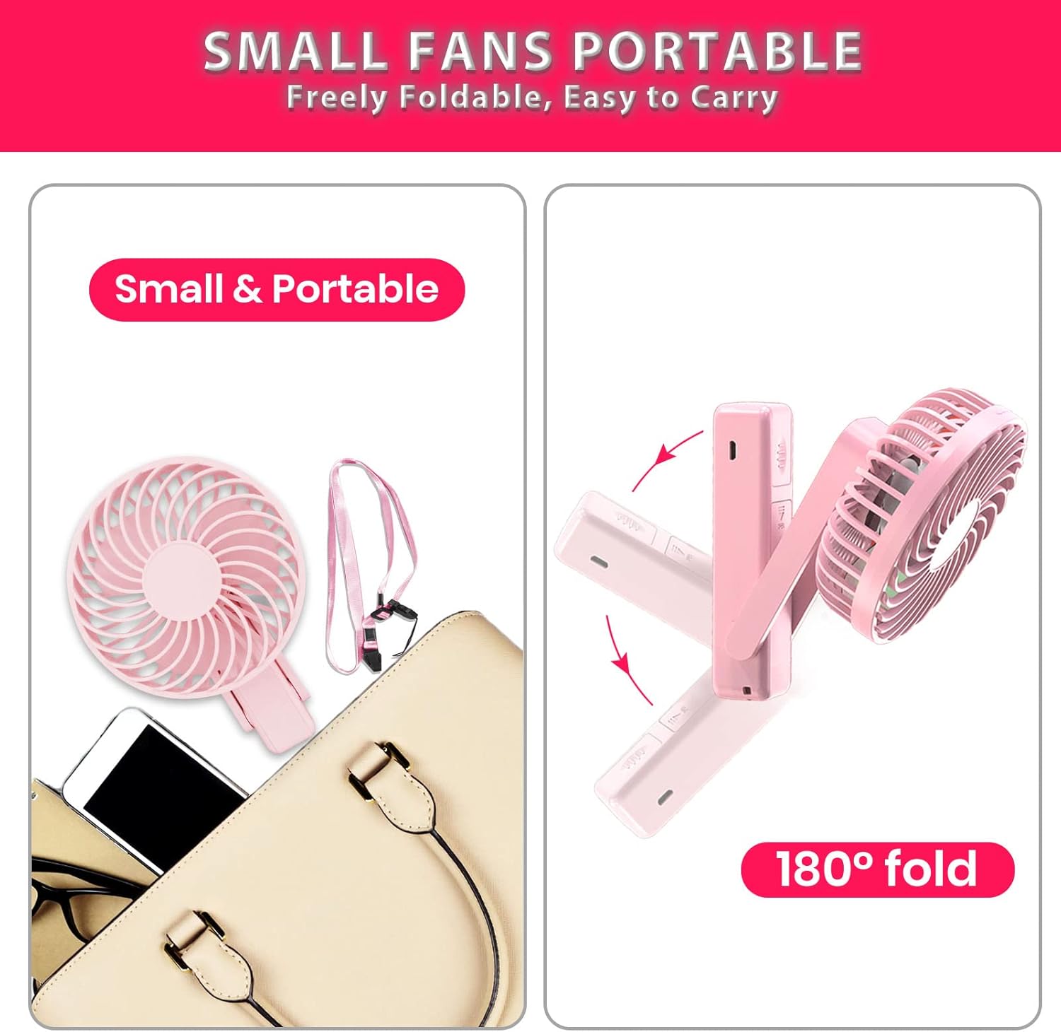 Battery Operated Portable Fan, Mini Rechargeable Handheld Fan,Small Foldable Fan,Quiet But Powerful Desk Fan Up To 10 Hrs Operat