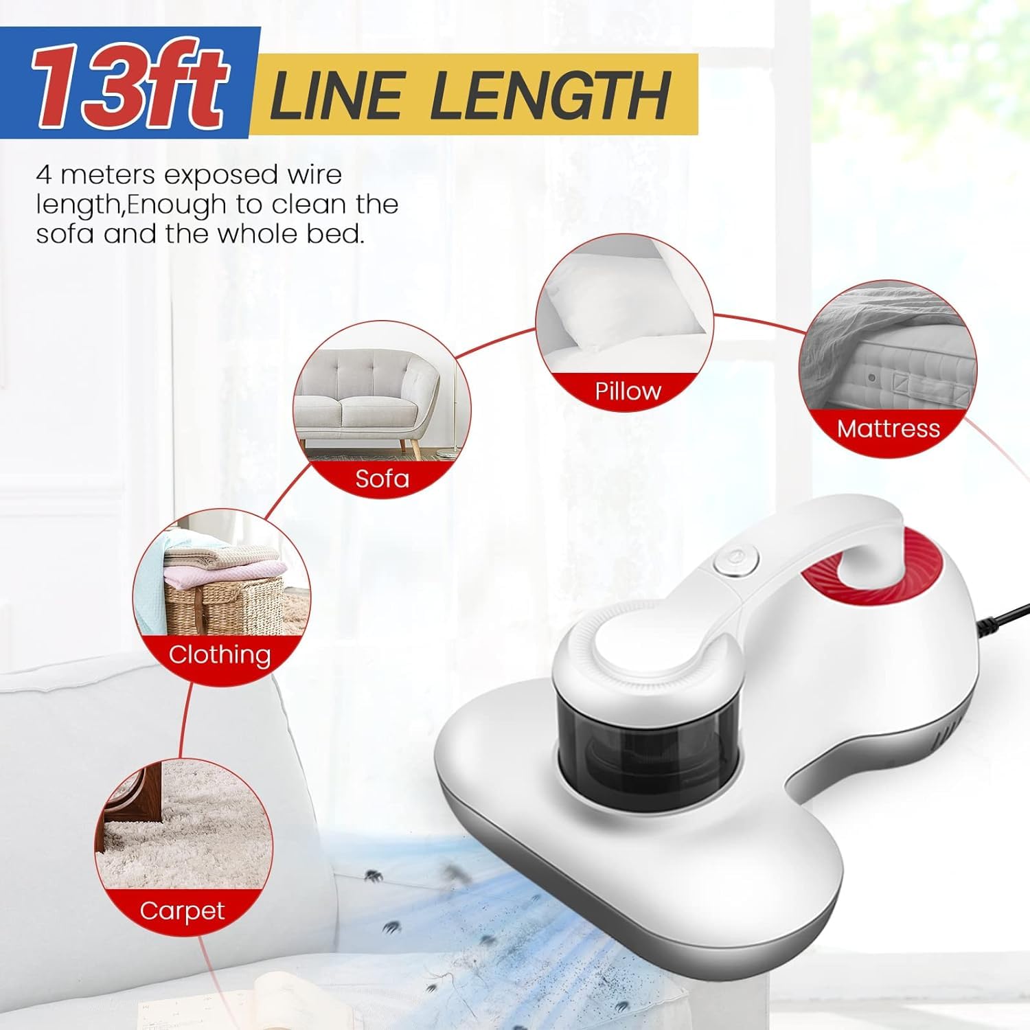 Bed Vacuum Cleaner With 12Kpa Powerful Suction d Handheld Mattress Vacuum Cleaner For Bed Sheet Pillow Couch3 Pcs Hepa Filter, Red And White Lp1003